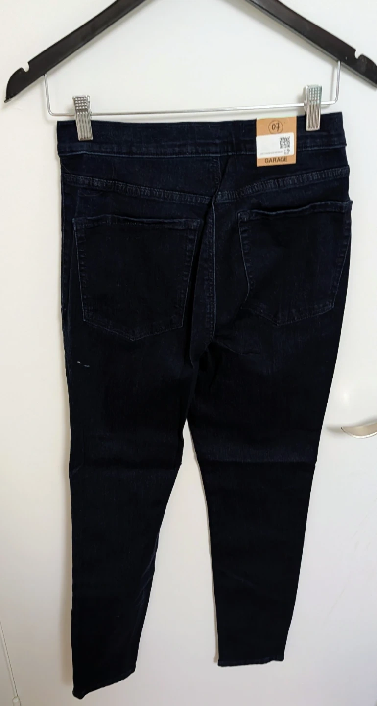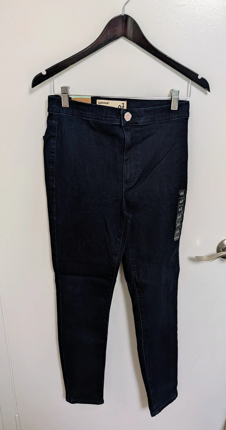 Garage dark wash denim jeans in size 07. These pants are still in their original packaging with tags attached. They're a versatile addition to any wardrobe.