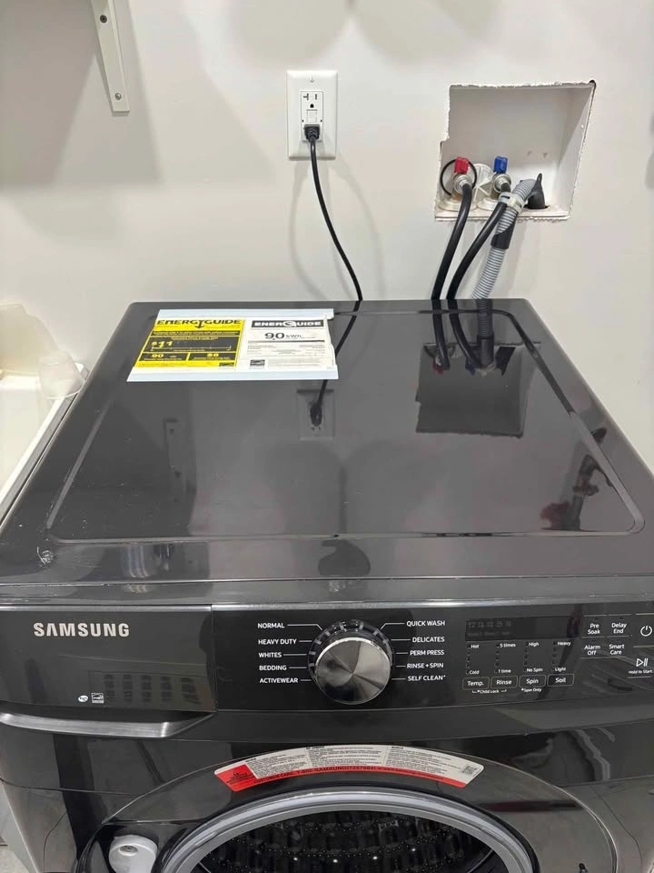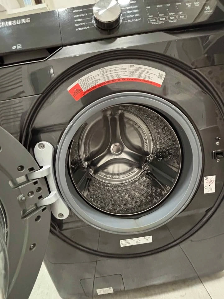 Samsung front-load washing machine in excellent condition. Lightly used and very clean inside and out. Works perfectly with multiple wash settings including: Normal, Heavy Duty, Whites, Bedding, Quick Wash, Delicates, and Self Clean. Features a large capacity stainless steel drum. No issues, works great and has been well maintained. Selling because I'm moving.