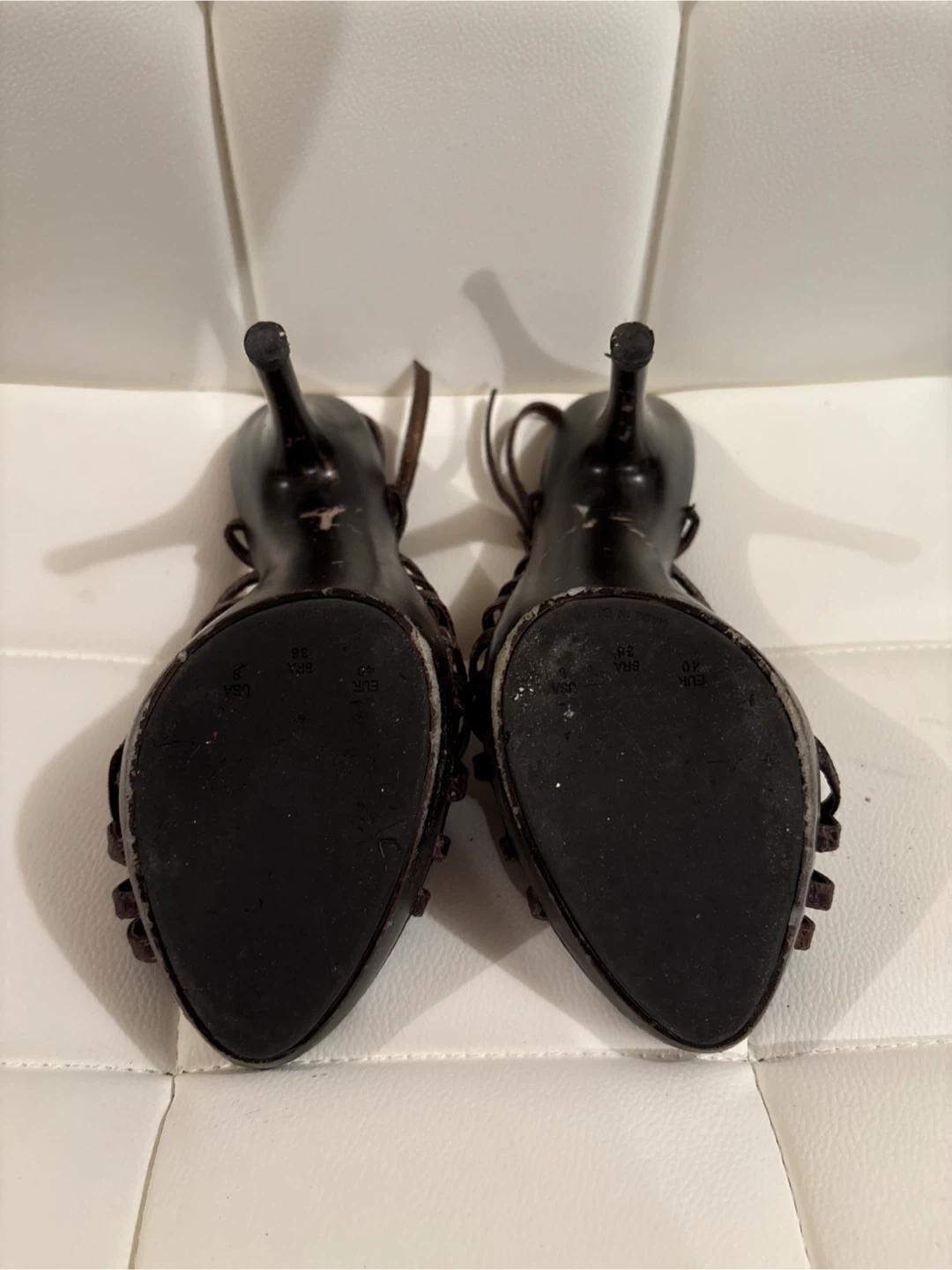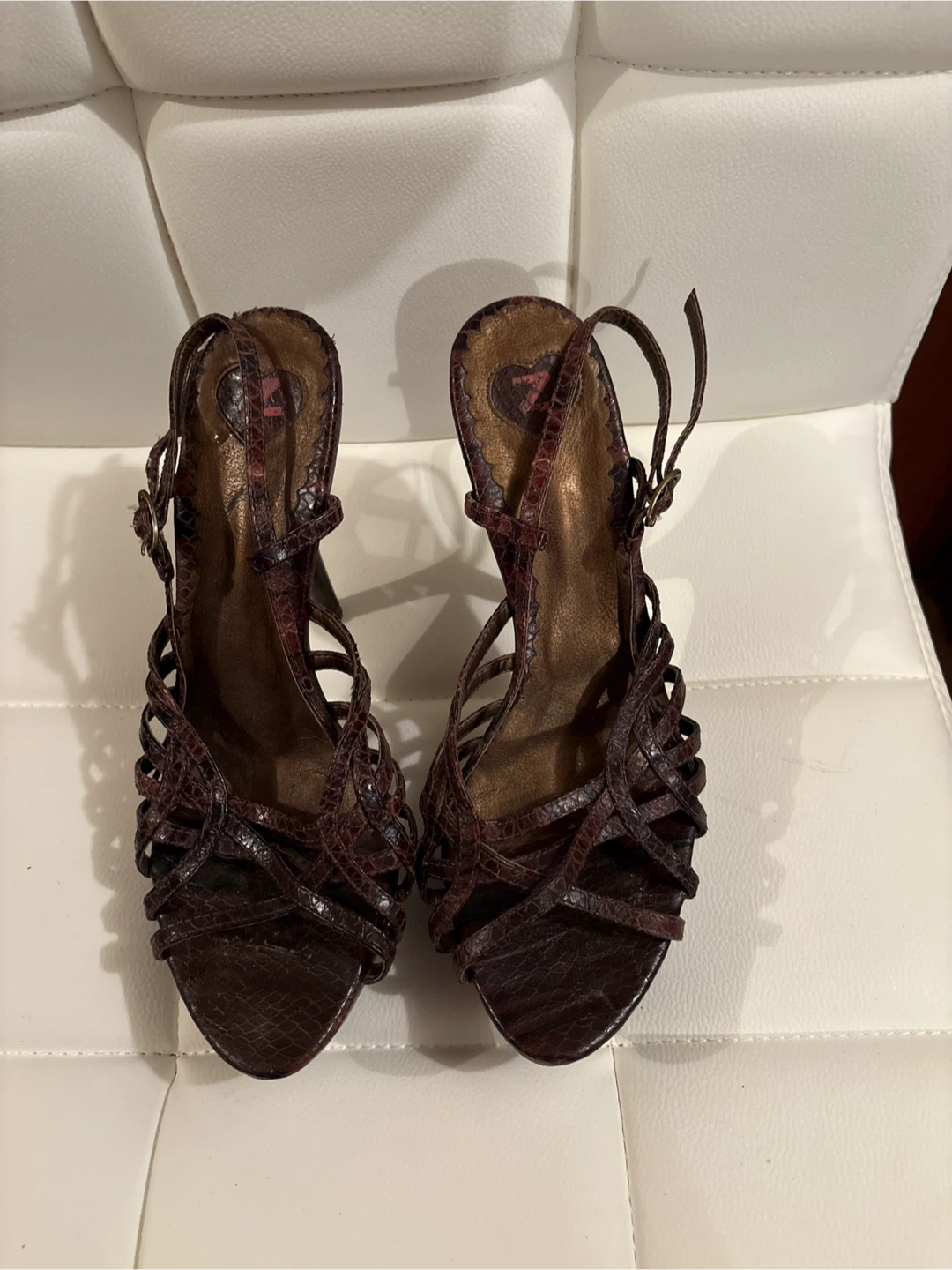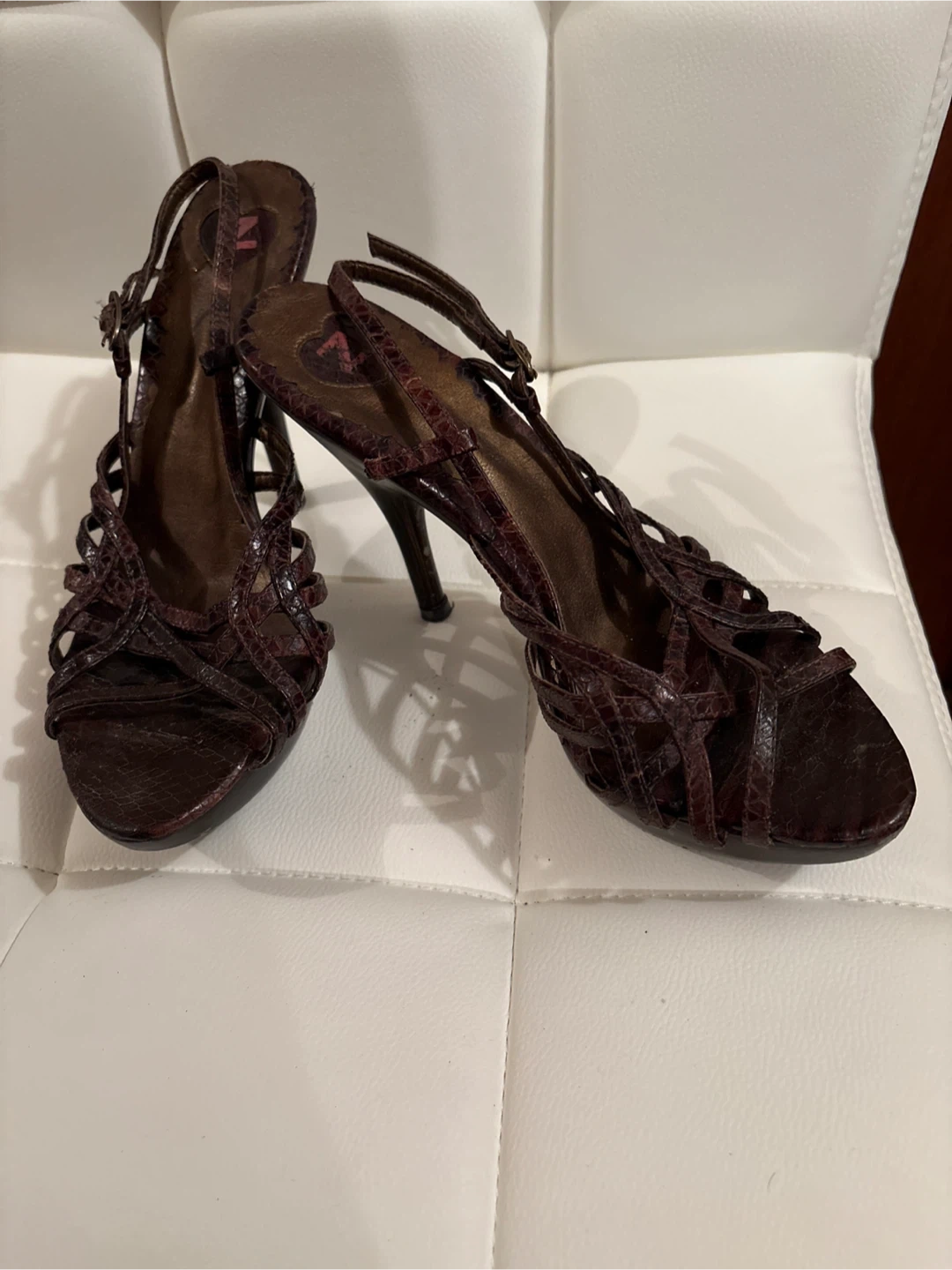 26These ZI Italy heels are a stylish addition to any wardrobe! They feature a unique strappy design and are in a lovely brown colour. Size 8.