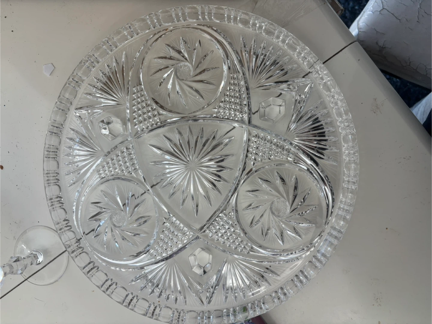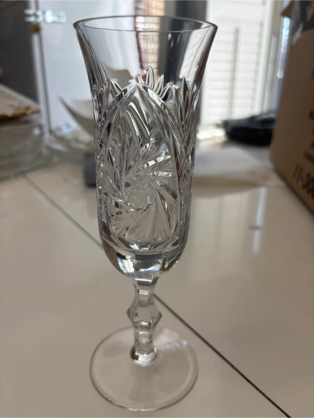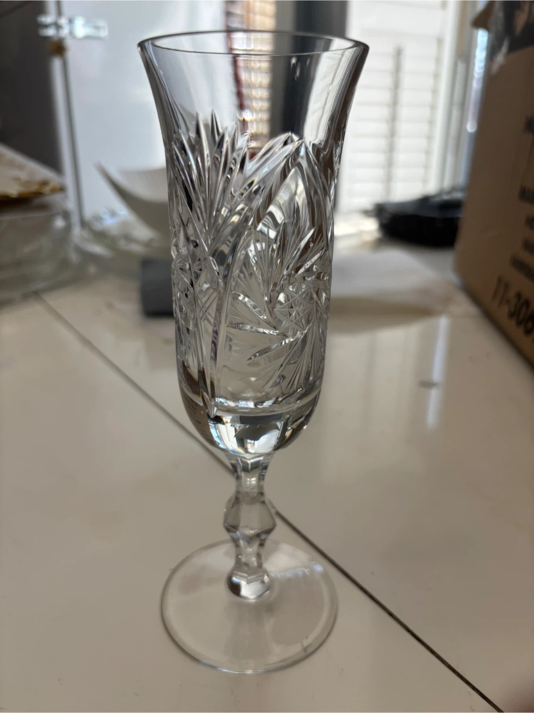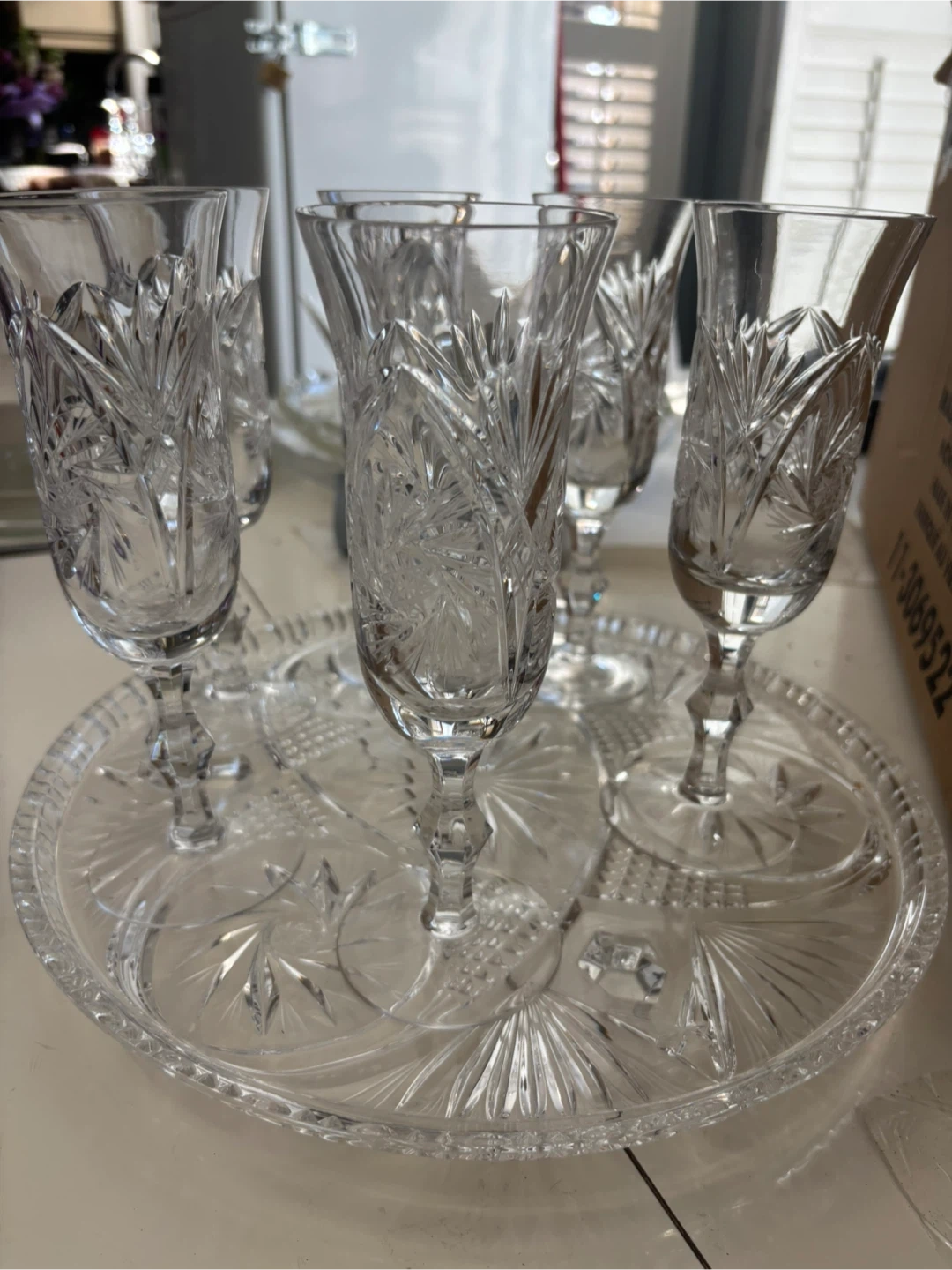 Beautifully crafted crystal flutes (16 flutes) and a matching etched serving tray. Both pieces showcase intricate patterns and elegant designs. Perfect for special occasions or adding a touch of sparkle to your table setting!