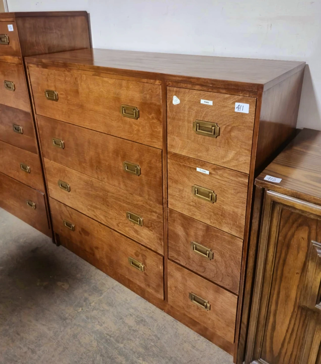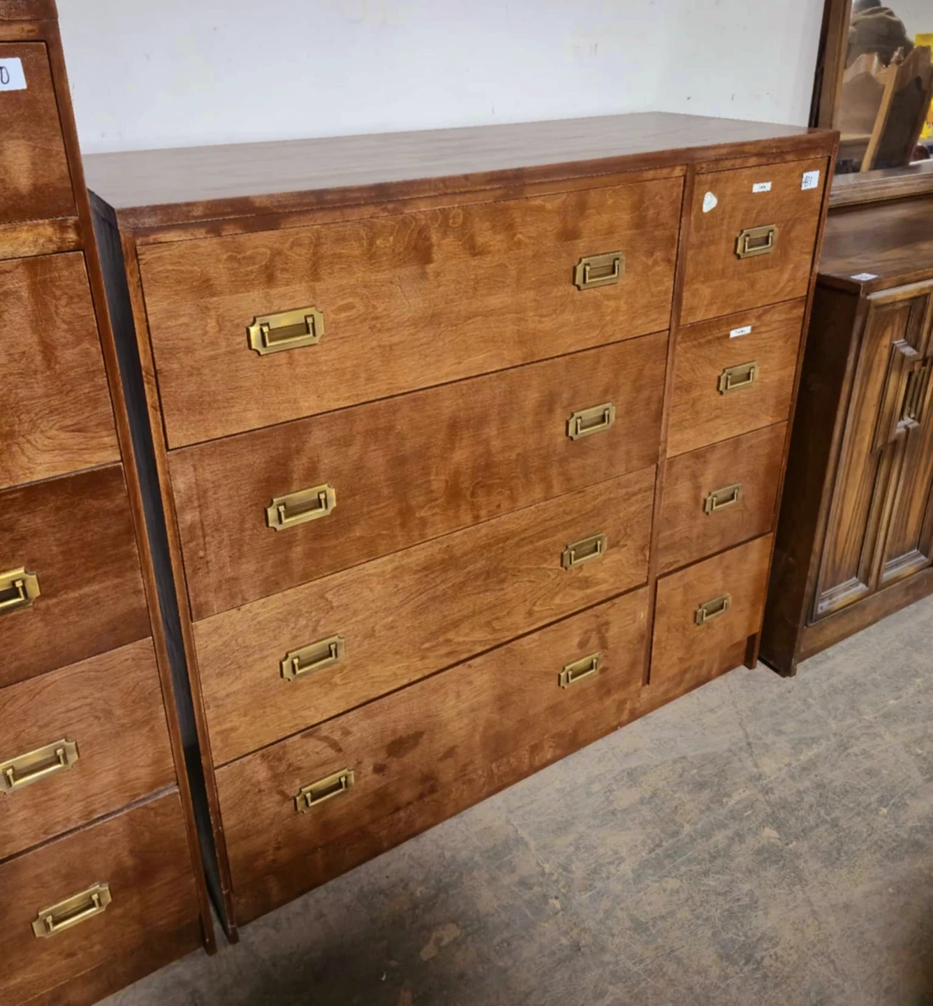 Solid Walnut 8 Drawer Tallboy Dresser With Brass Handles (Delivery Available)