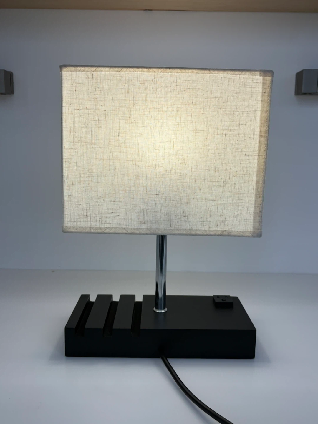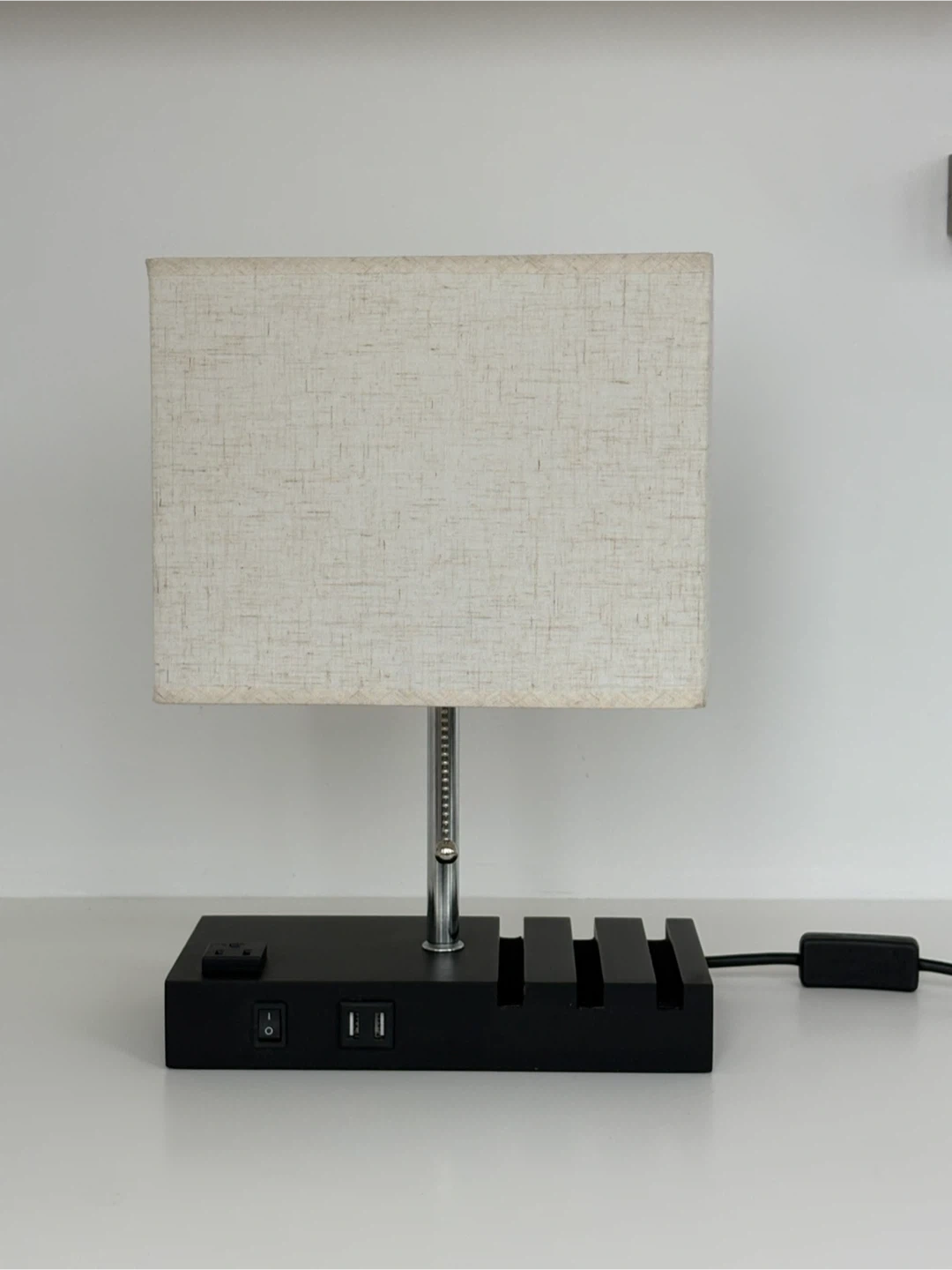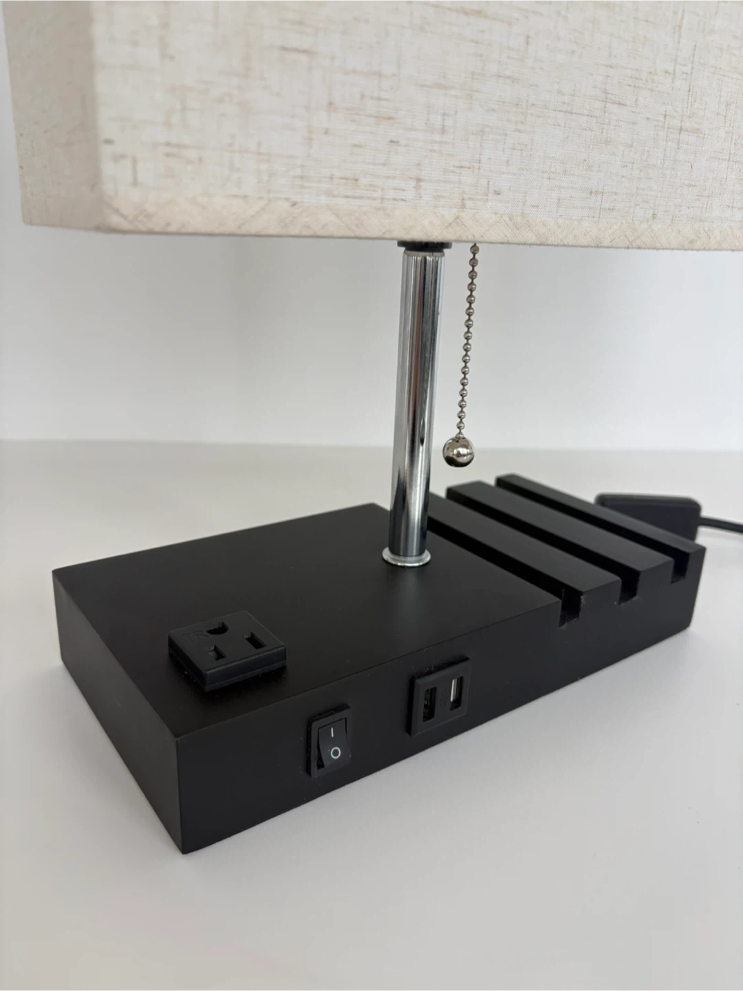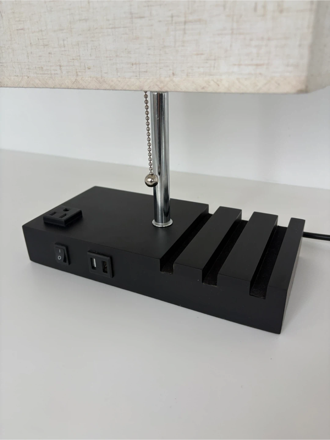 This bedside lamp features a convenient built-in AC outlet and two USB charging ports on its base. It has a pull-chain switch and I’m including the light bulb. I paid over $70 for it, and selling for $30.