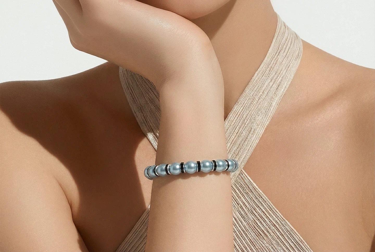 Luxury Ice Blue Pearl Bracelet w/ Black Crystal Spacers