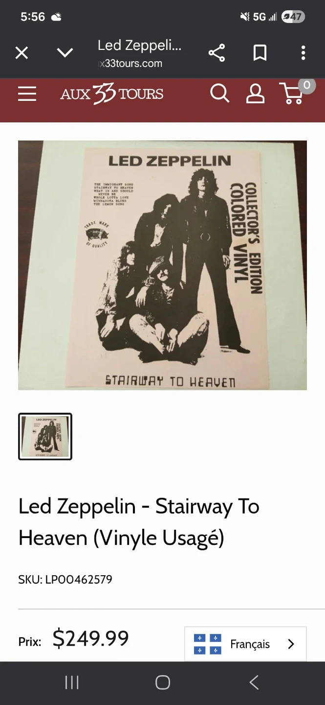 Selling a rare Led Zeppelin Stairway to Heaven collector's edition colored vinyl in great condition and ready for a new home for any Led Zeppelin fan.