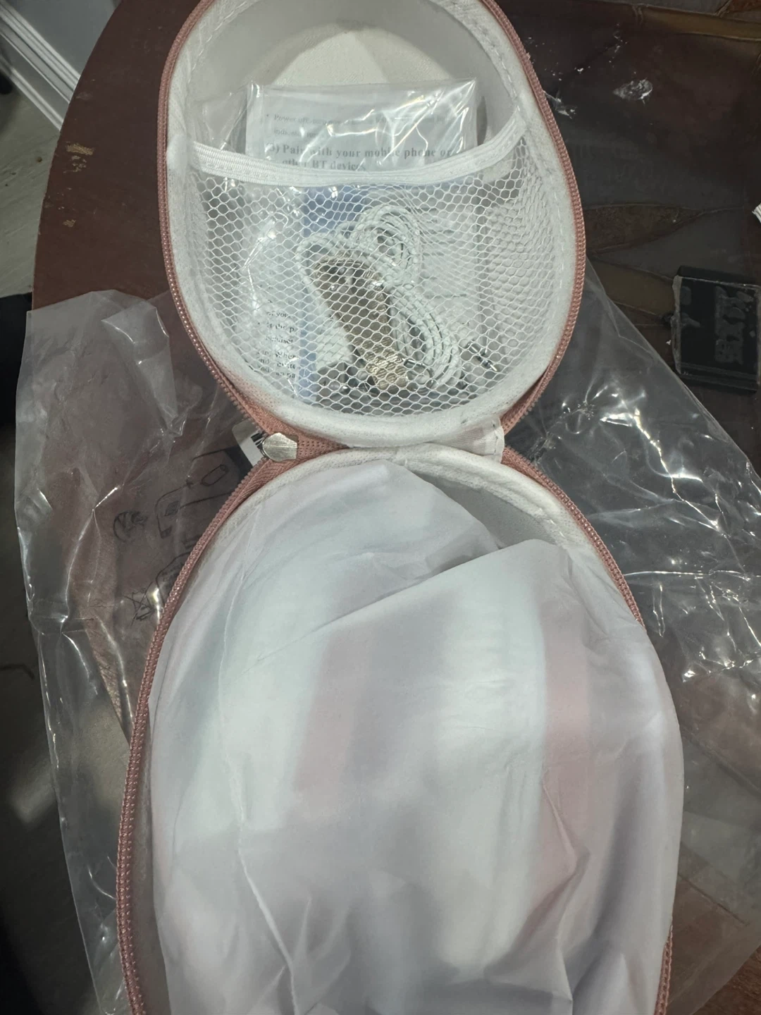 10Selling a pair of ZIHNIC headphones in rose gold! They come with a carrying case and all the original accessories, including the charging cable and instructions. These headphones are lightweight and portable, making them perfect for travel or everyday use. They are brand new and have never been used.