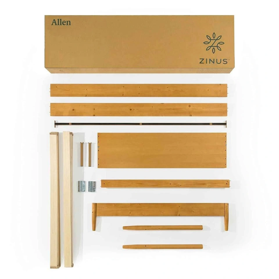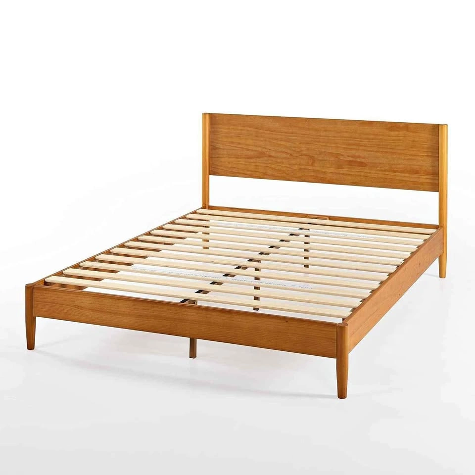 Brand new bed frame. It comes unassembled in original sealed box with all manufacturer parts and hardware for easy assembly. * Only the bed frame for sale. Mattress not included and sold separately. Retails at Amazon for $644 ($570 + tax). Save your money. ZINUS Allen Mid Century Wood Platform Bed Frame/Solid Wood Foundation/Wood Slat Support/No Box Spring Needed/Easy Assembly, Queen Product details: Brand: Zinus Size: Queen Material: Alloy Steel, Engineered Wood, Wood Product Dimensions: 2.02L x 1.51W x 0.31H Meters Style: Classic, Mid Century Special feature: No Box Spring Needed Colour: Brown CLASSIC ELEGANCE - This beautiful mid-century design with rounded legs and a solid wood finish adds style to your bedroom without breaking the bank DURABLY CRAFTED - A solid wooden framework, from headboard to legs, is durably designed and made for long-lasting, squeak-free use; twin size supports a maximum weight of 350 lbs, while all other sizes can support up to 700 lbs NO BOX SPRING NEEDED - Sturdy wooden slats support and extend the life of your latex, memory foam or spring mattress without the need for a box spring EASY ASSEMBLY - All tools, parts and instructions are expertly packed into one box for simple assembly with the help of a friend in under an hour