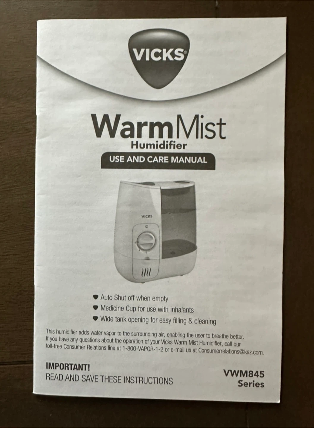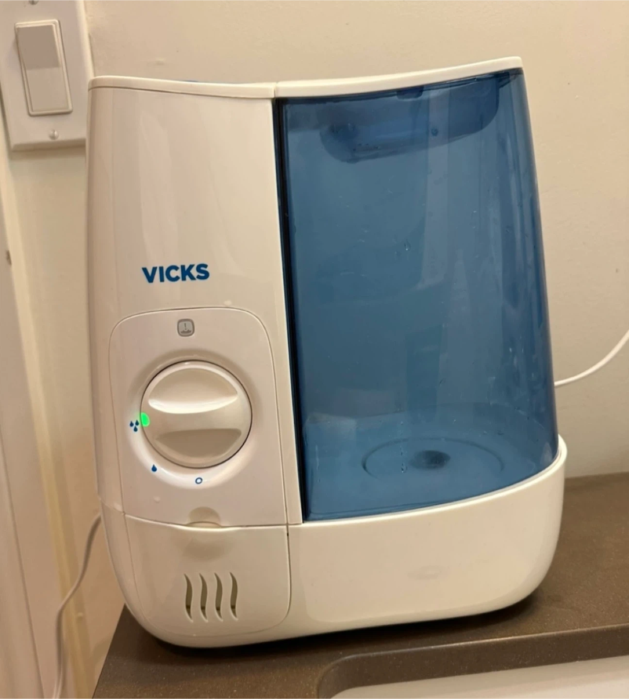 Vicks warm mist humidifier. Bought a couple years ago and works perfectly. Used only semi regularly in winter.