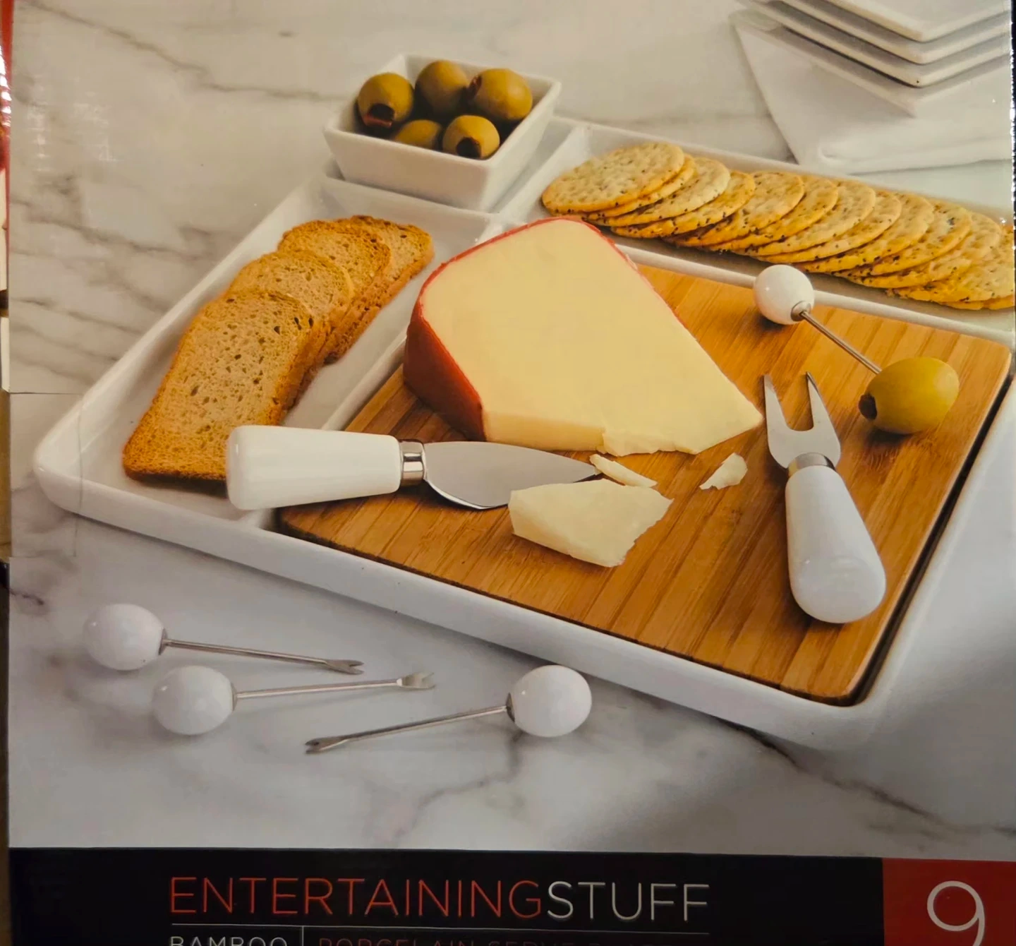 EntertainingStuff Bamboo & Porcelain Cheese Board Set