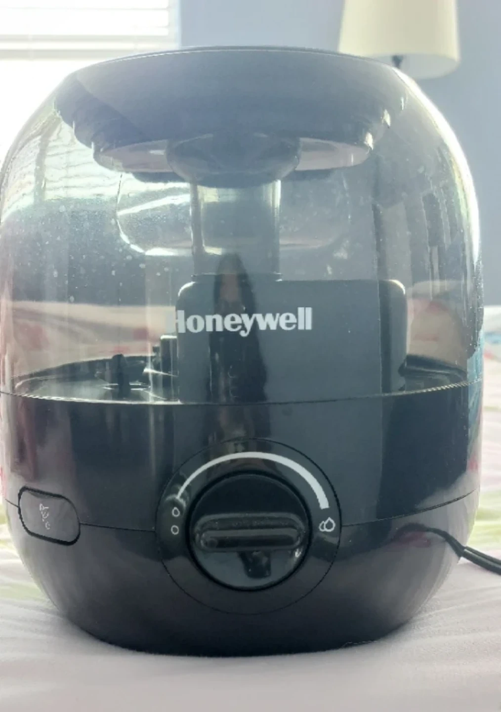 Honeywell humidifier in black. Features an adjustable mist control knob. Great for improving air quality in your home! Used 2 times only.