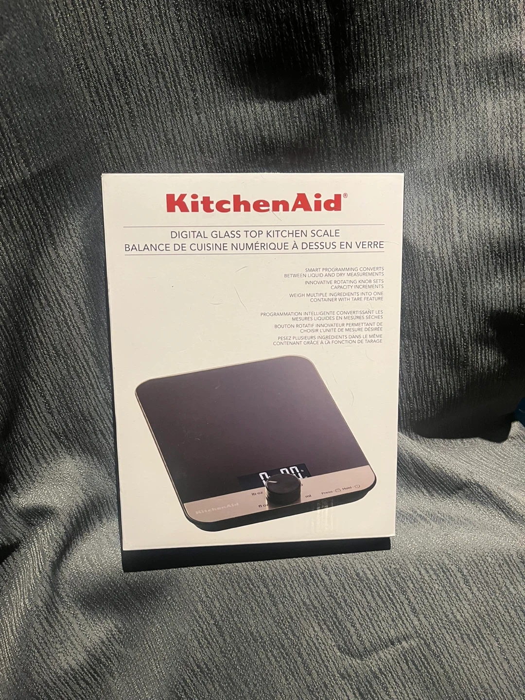 Firm!! Guaranteed the best price this item has brand new non-refurbished! This KitchenAid digital kitchen scale features a sleek glass top and an oversized LCD screen. It offers precision accuracy with four load cells and a tare feature to auto-tare and subtract the weight of containers. The innovative rotating knob sets units between grams, pounds, ounces, and more. It includes 3 x 1.5V AAA batteries.