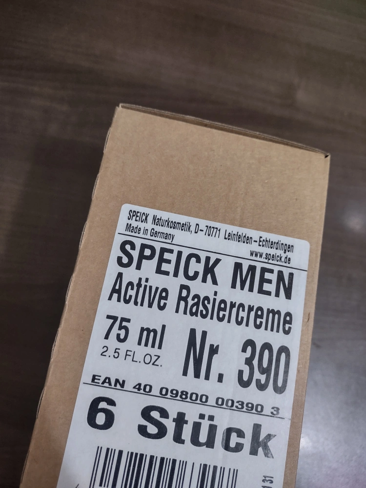 Selling full carton ( which includes 6 tubes, 75 ml each) of SPEICK Men's Shaving cream. Made in Germany.