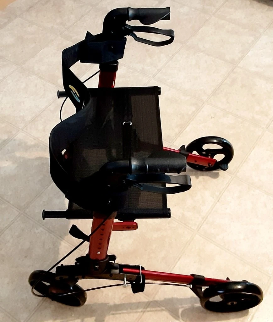 New out of the box, assembled, lightweight BLACK four-wheeler rollator