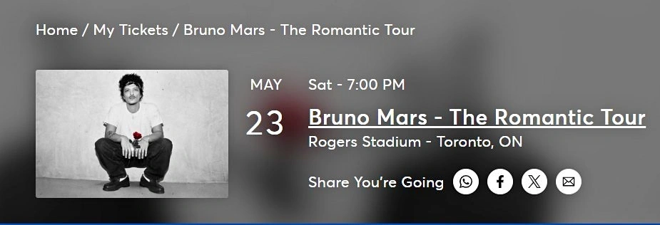 I have 3 tickets for the Romantic Tour. Priced at $2,400 OBO. Location: Rogers Stadium - Toronto, ON. These are 3 active tickets in Sec A4, Row 22, Seats 5-7. They can be bought individually. Accepted payment: Cash or E-transfer. Transferrable via Ticketmaster.