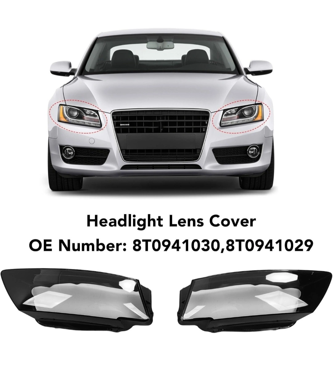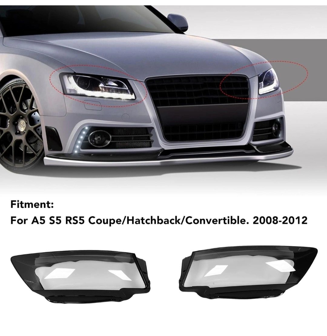 1 Pair Clear Headlight Lens Shell for A5 S5 RS5 2008 to 2012