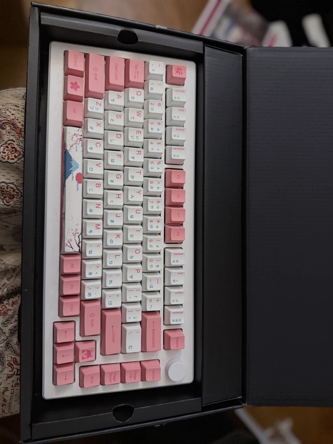 Selling an Akko MOD007v2 mechanical keyboard with a Sakura theme! It's in excellent condition and comes with its original box. This keyboard features a unique design and is perfect for anyone looking for a high-quality mechanical keyboard with a distinctive aesthetic. The Akko MOD007v2 is known for its premium build and comfortable typing experience