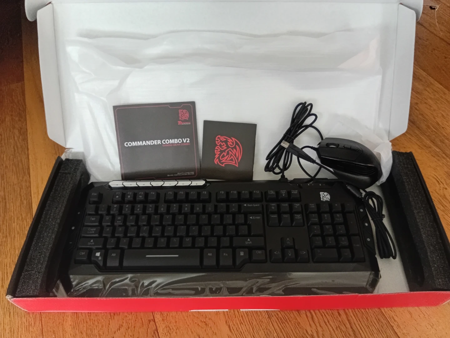 Brand New Thermaltake Tt Esports Keyboard and mouse set. It features 3-colour LED illumination and multimedia function keys. All items are in their original packaging box.