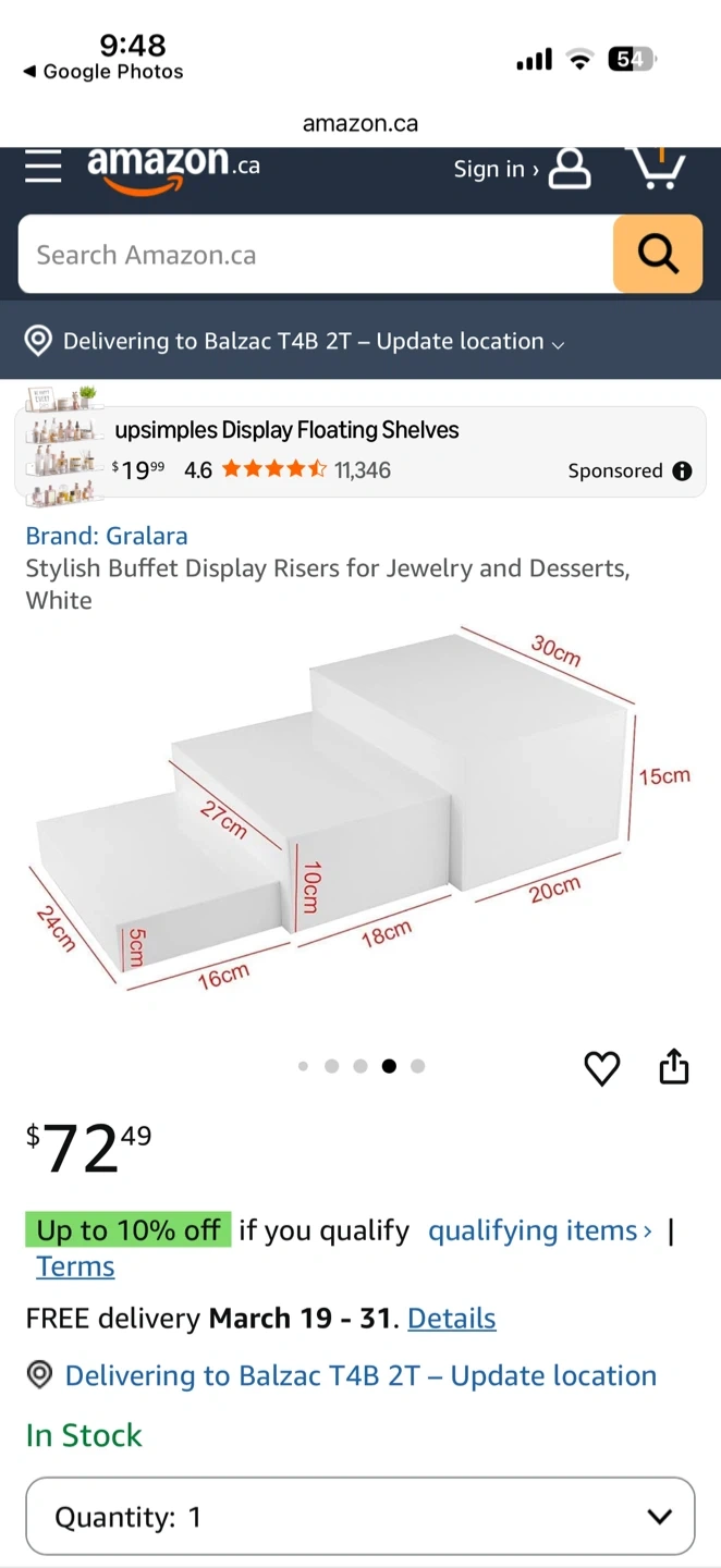 This set includes three white display risers, perfect for showcasing jewelry or desserts. The dimensions are 24cm x 20cm x 5cm, 27cm x 18cm x 10cm, and 30cm x 20cm x 15cm. They're great for event displays or home organization!