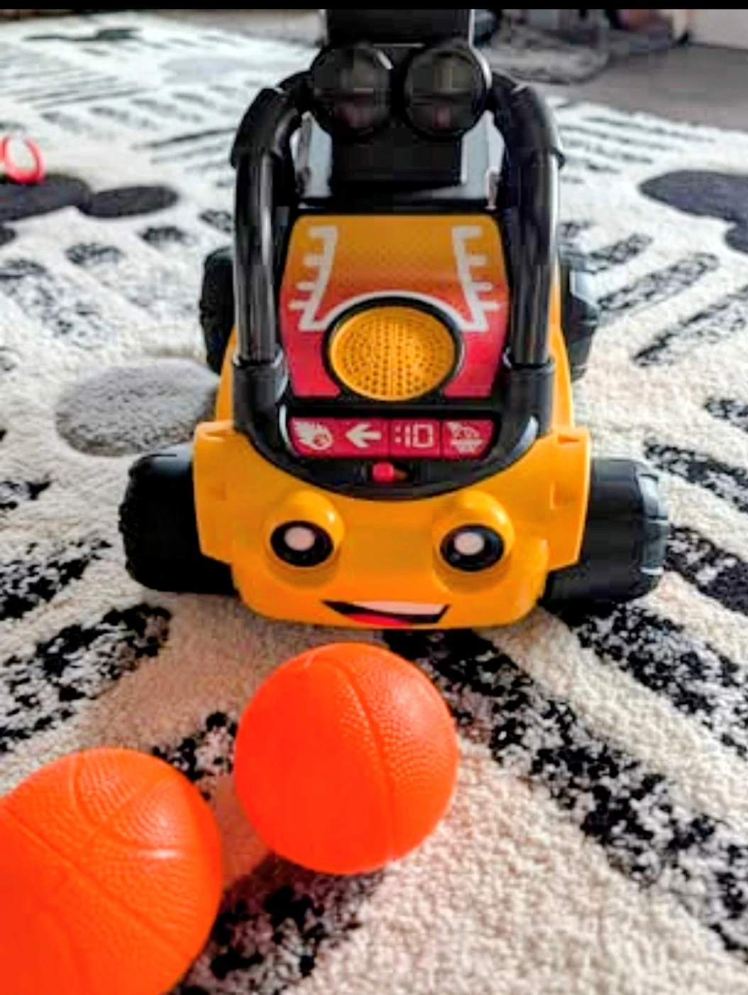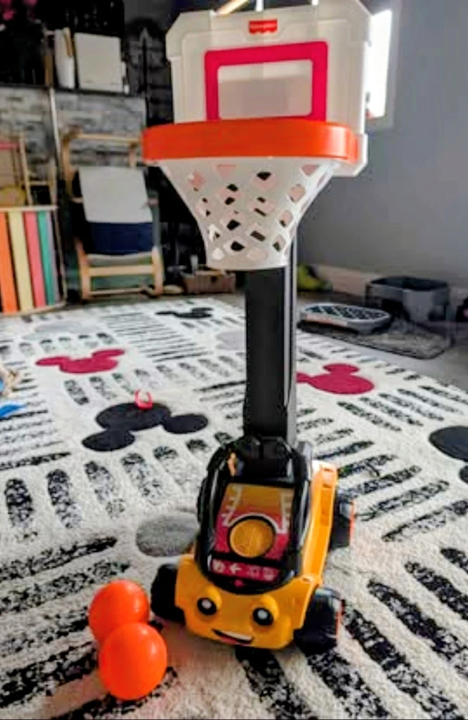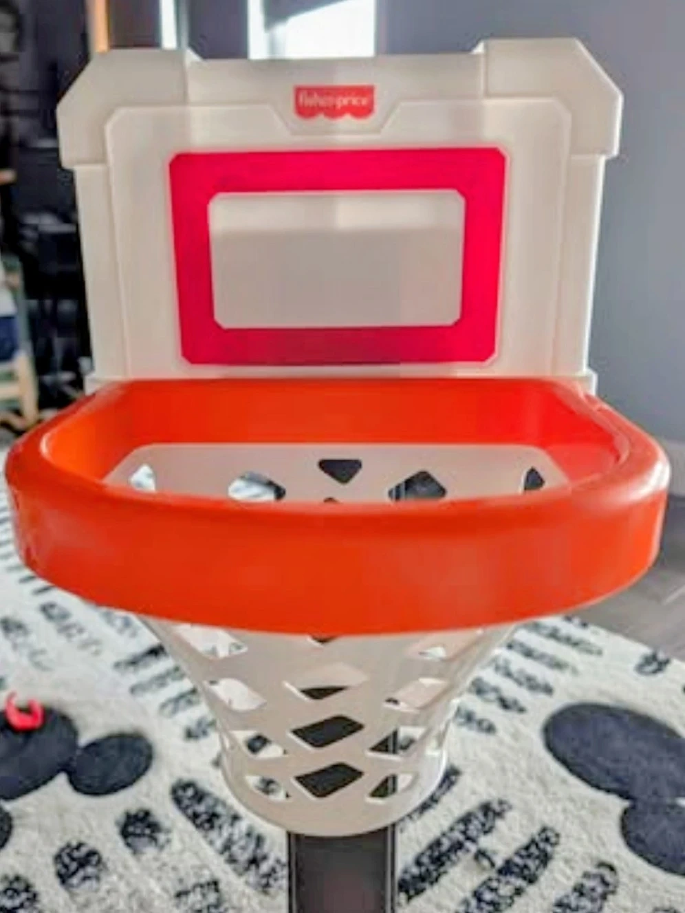 Assembled but never used Fisher-Price basketball hoop. Comes with three balls. Batteries not included.