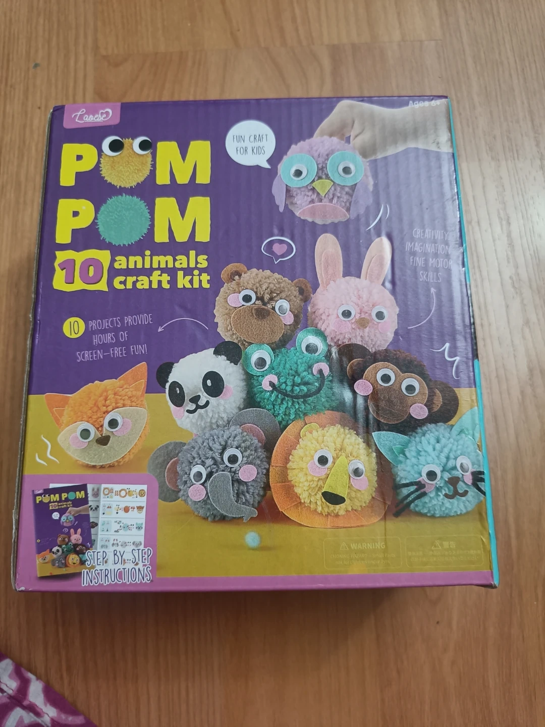This is a fun Pom Pom 10 Animals craft kit. It provides 10 projects for screen-free fun. Perfect for developing creativity and fine motor skills in kids!