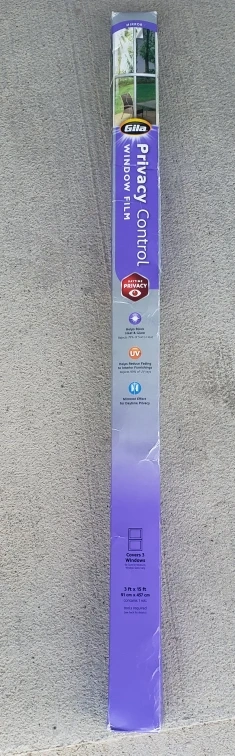 I'm selling Gila Privacy Control Window Film. It is mirror film and the size is 3 ft x 15 ft (91 cm x 457 cm). It blocks the sun's heat and UV rays, reduces glare, and enhances privacy.