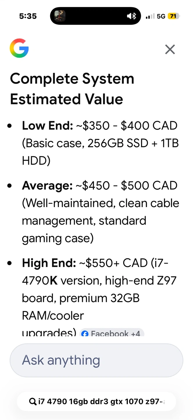 Z97-A ASUS Motherboard: Great motherboard supporting up to 32GB of Ram. Goes for $100 on its own.