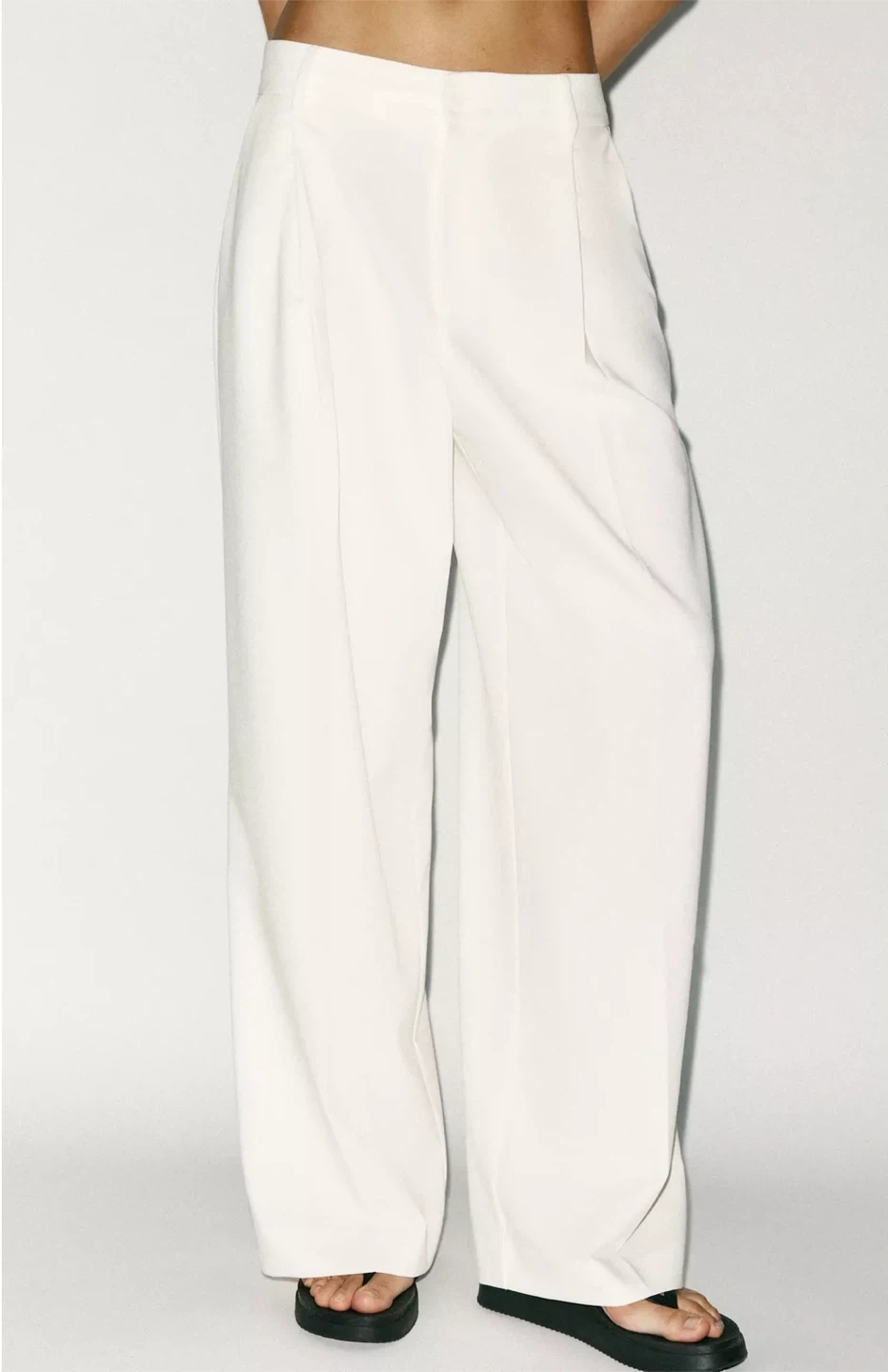 Brand new Zara wide-leg trousers in white, size XS. Nice option for daily commute. Also a pair of dark wash wide-leg jeans, size Xs. Both items have tags attached.