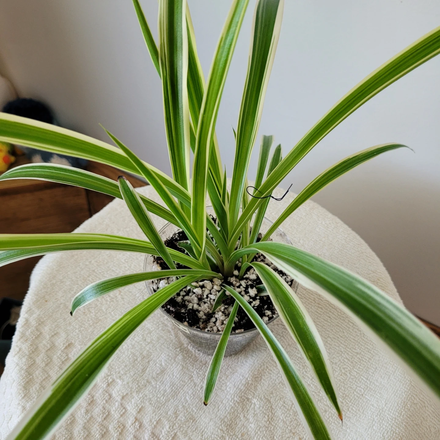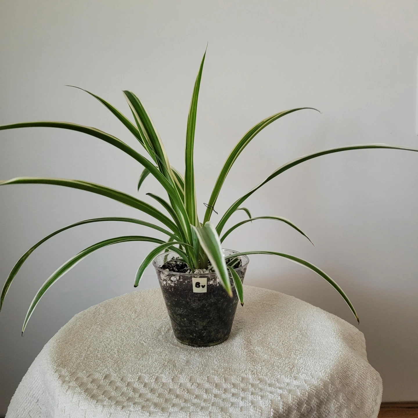 Well rooted spider plants that have been acclimated in my potting mix! Likes sunlight but will do ok in the washroom because of the humidity. I keep on my window bay and in washroom.