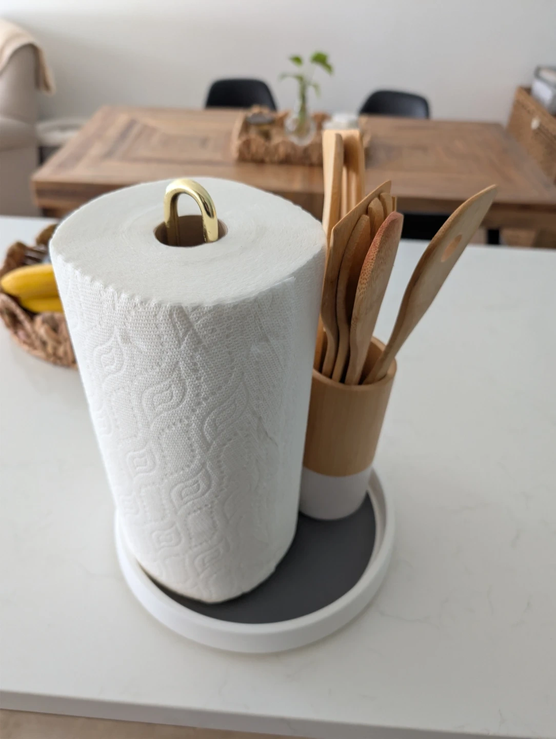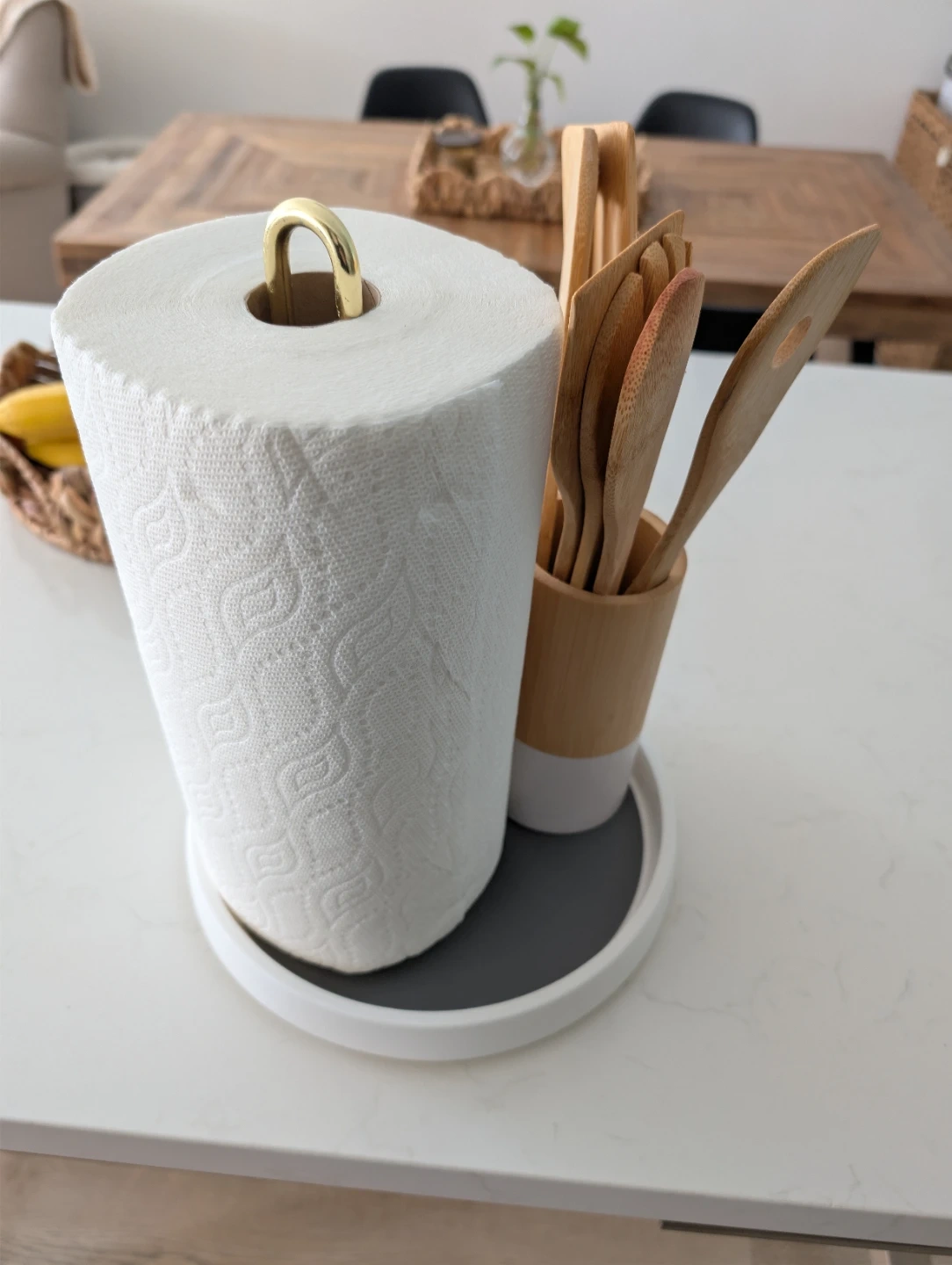 This kitchen organizer features a rotating base for easy access. The non-slip grey surface keeps items in place. It's great for countertops!