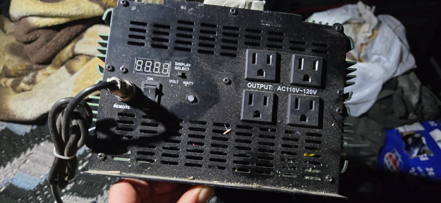 This Power Bright power inverter is 3500 watts and operates on 24 volts. It has four AC outlets for outputting 110-120 volts. It's designed for heavy-duty applications.