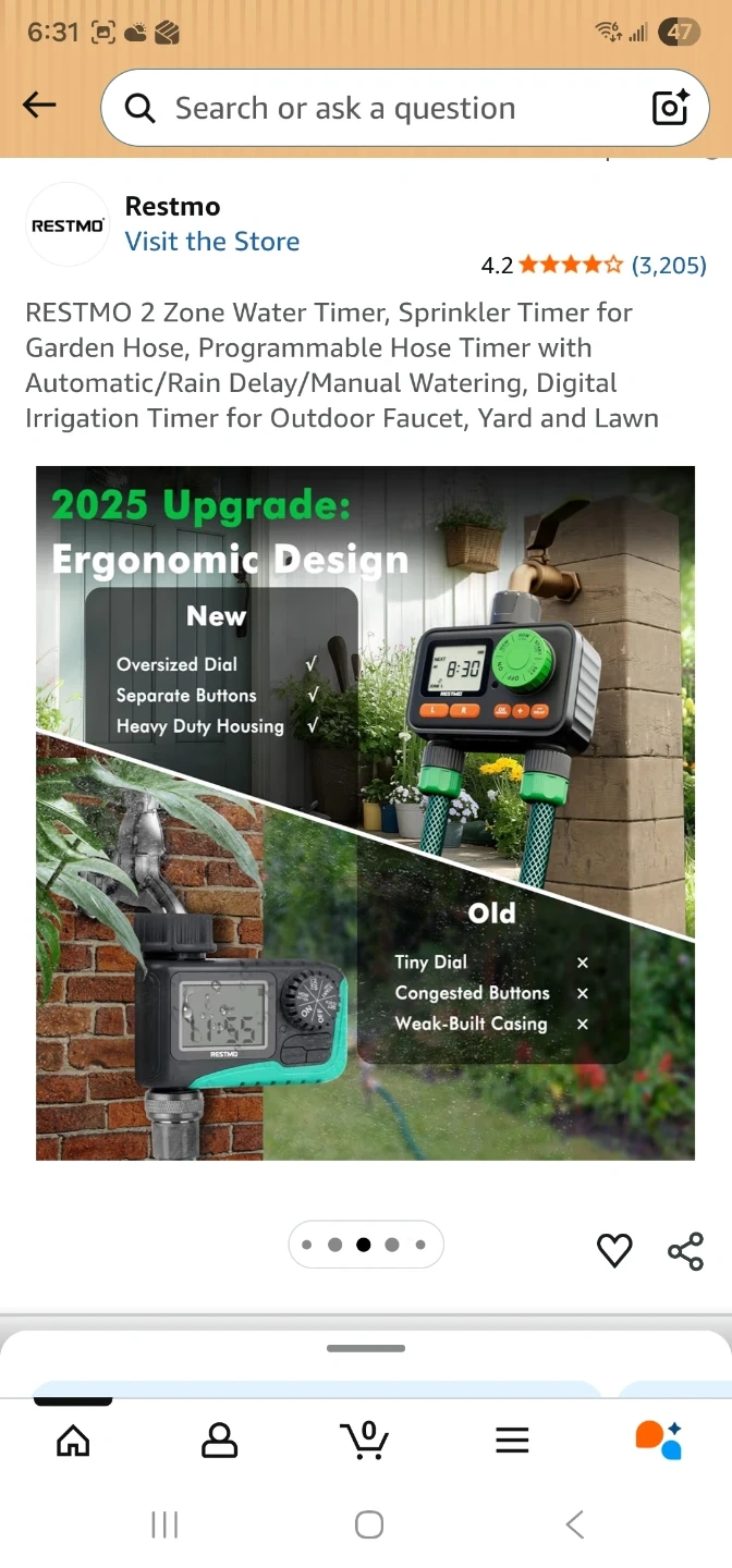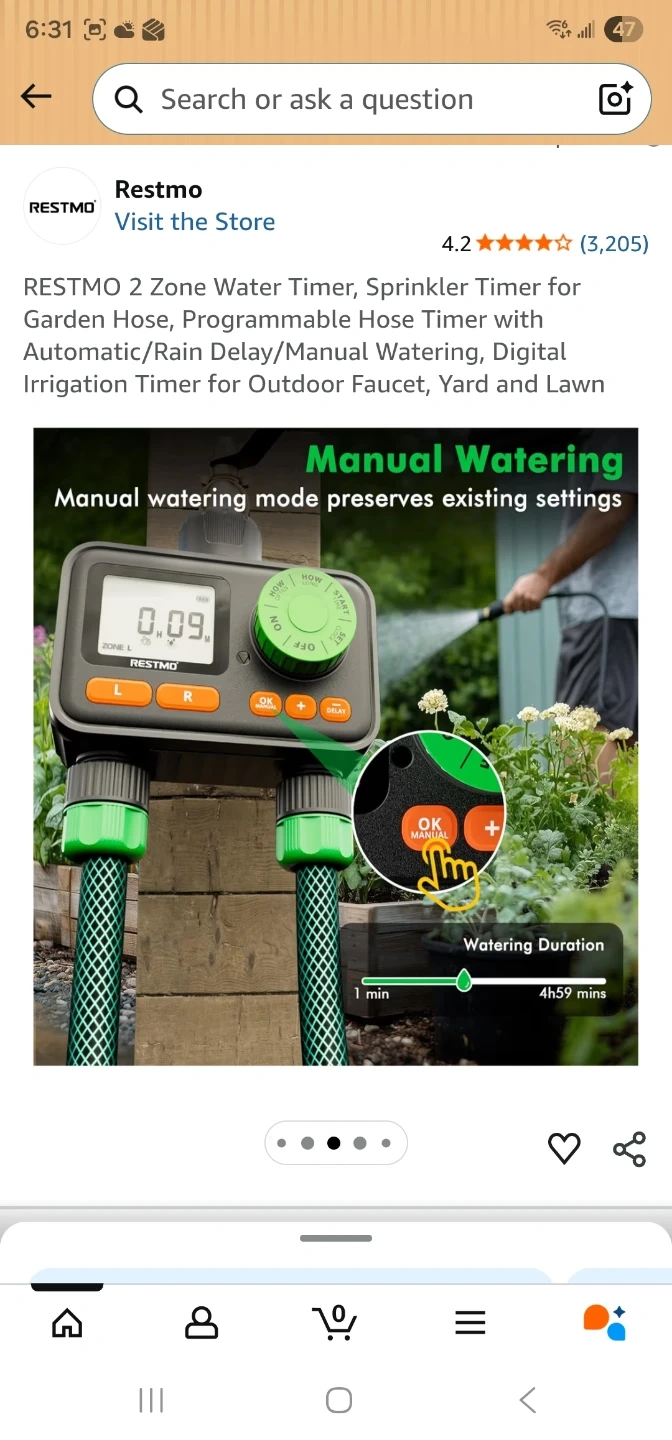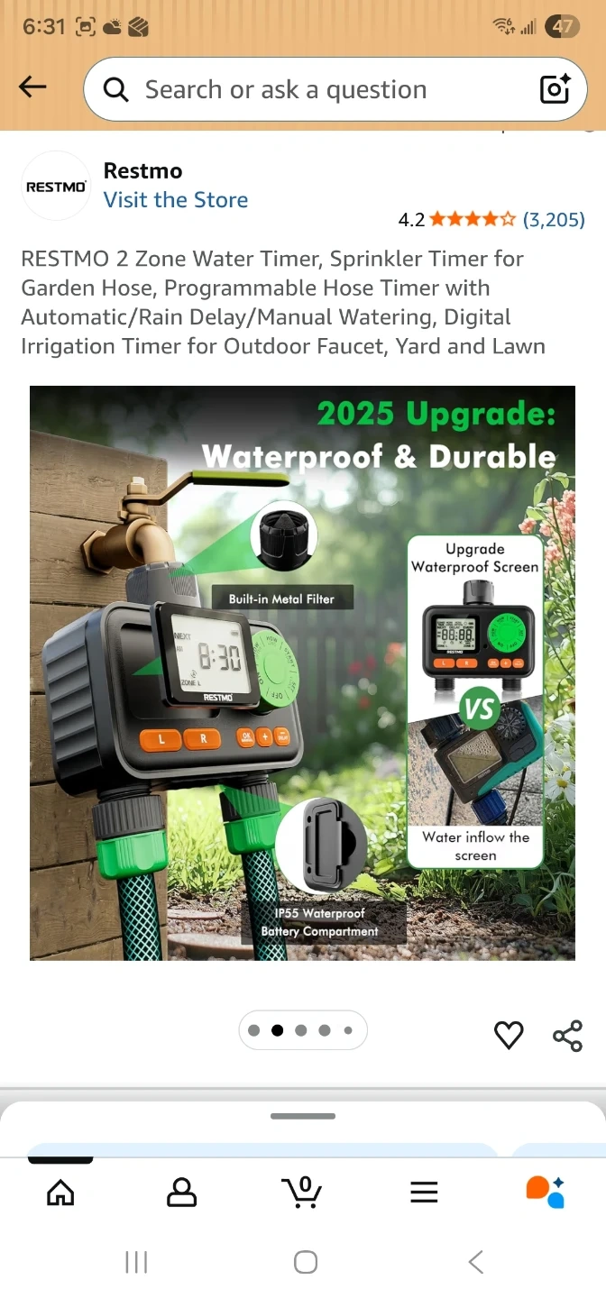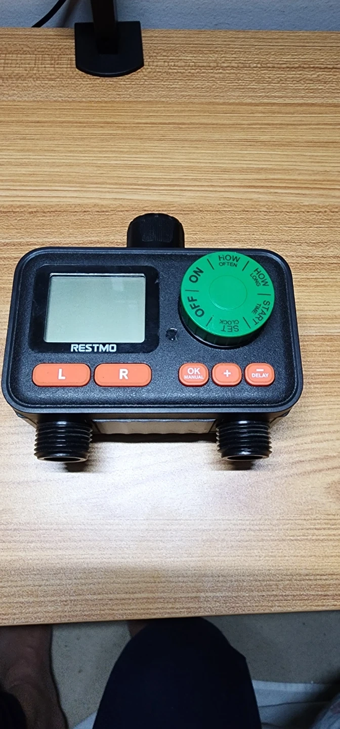 This is a RESTMO 2 zone water timer for garden hoses. It's programmable for automatic or manual watering. The timer has an IP55 waterproof battery compartment and a built-in metal filter. No box.