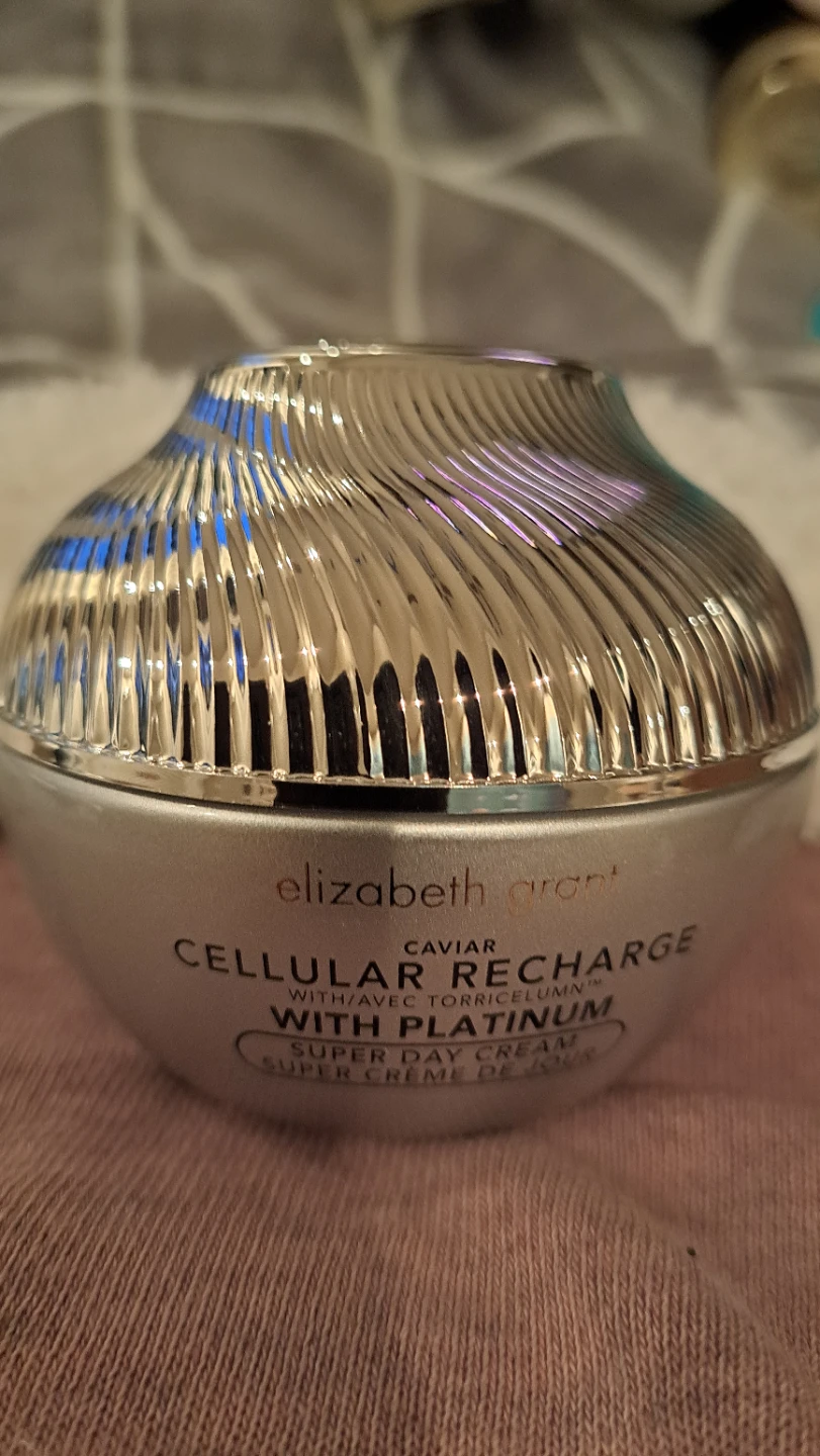 Elizabeth Grant Cellular Recharge Super Day Cream with Platinum. This super day cream is formulated with caviar and toric column for enhanced skin rejuvenation. It's a great addition to your skincare routine!