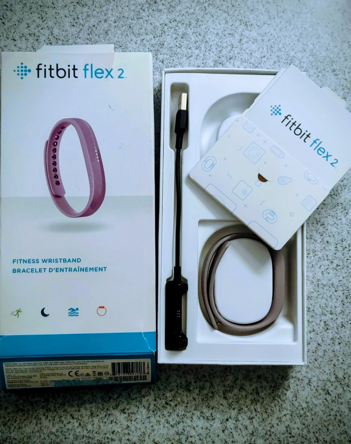 This is a Fitbit Flex 2 fitness wristband in a light purple colour. Selling wristband & charging cable.