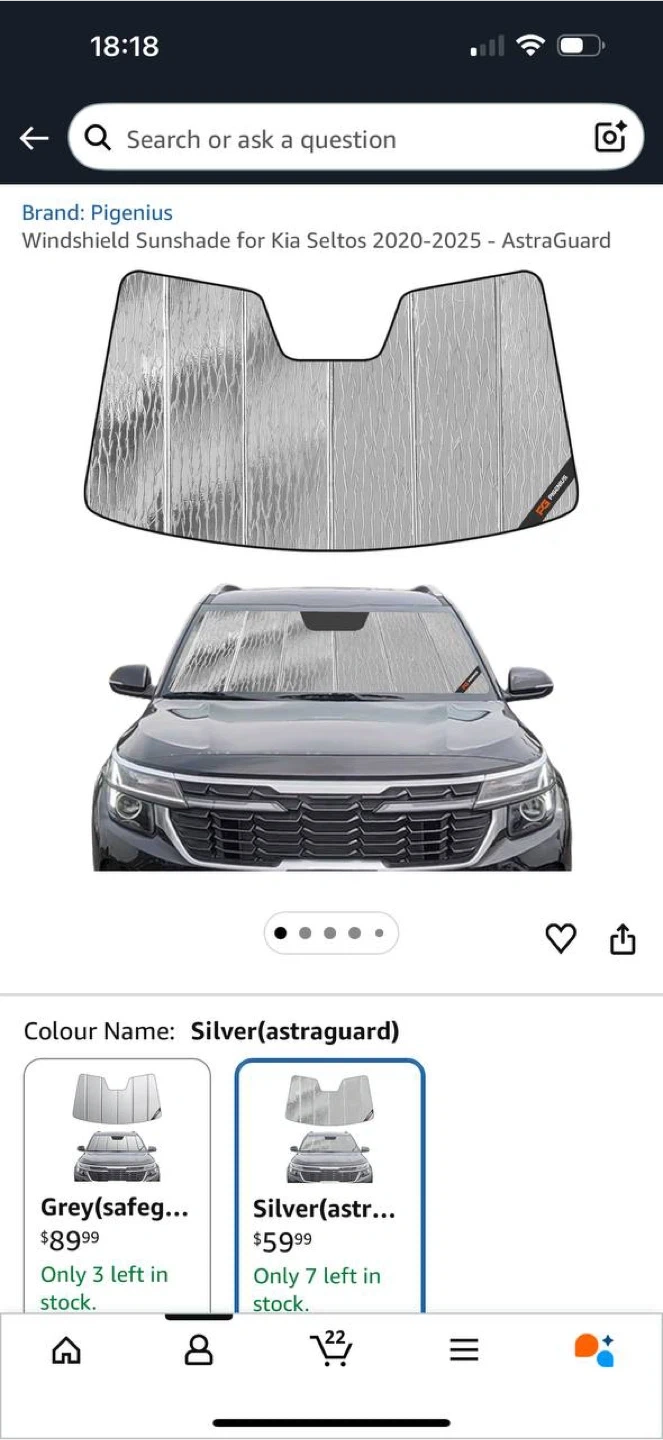 Pigenius Windshield Sunshade for Kia Seltos 2020–2025 – Silver (AstraGuard) ☀️🚗 – NEW