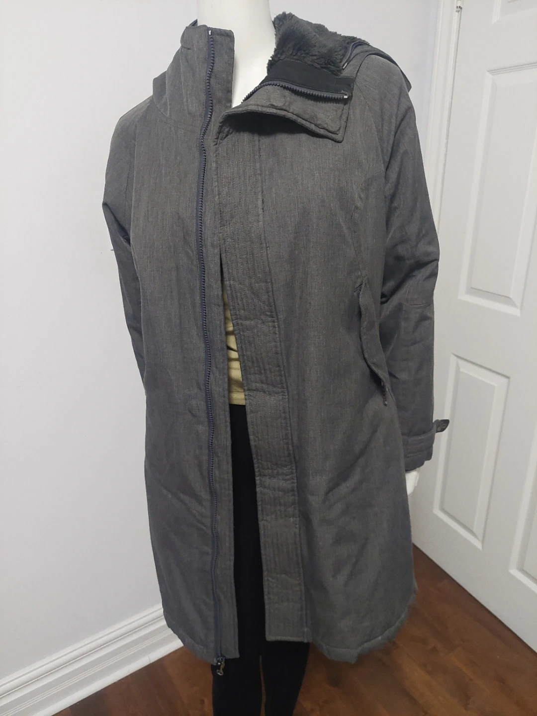 Selling a TNA winter coat in a stylish grey colour. It's in great condition and perfect for the Canadian winter. The coat features a hood and a warm lining to keep you cozy on those chilly days!