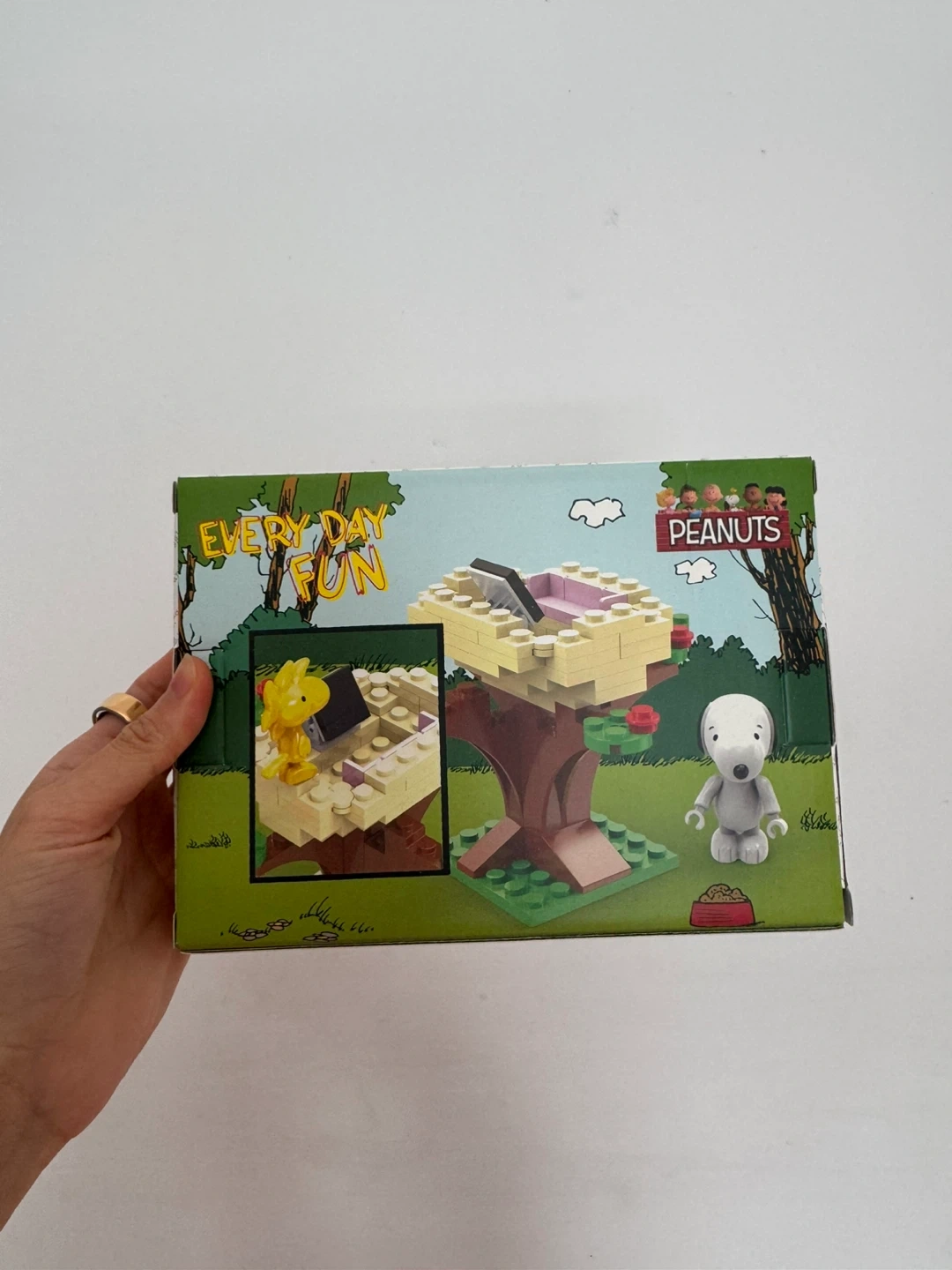 This Peanuts Every Day Fun building set features Snoopy and Woodstock. It's a fun construction toy for fans of the classic comic strip. Includes all pieces to build a treehouse scene.