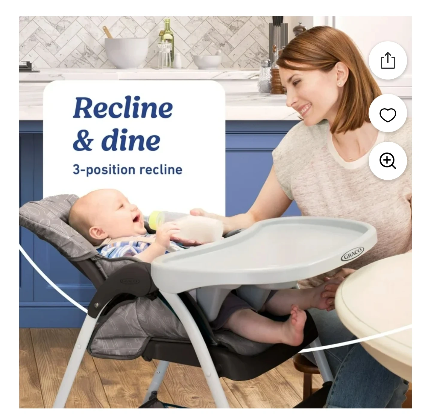 Graco Slim Snacker Highchair with One-Hand Fold, Adjustable Recline, Whisk