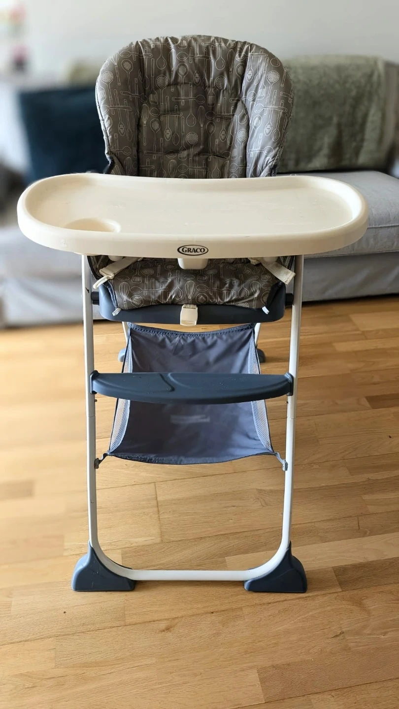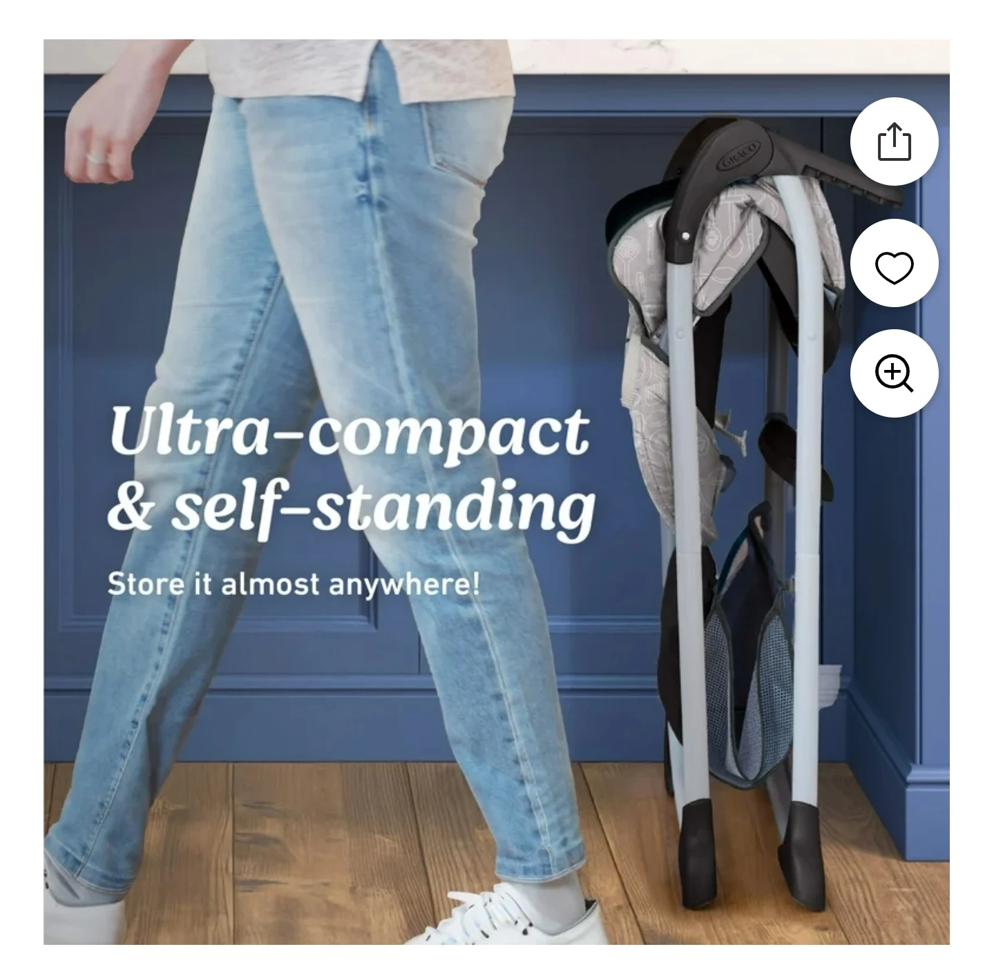 Ultra-slim folding high chair is designed to fit in compact spaces