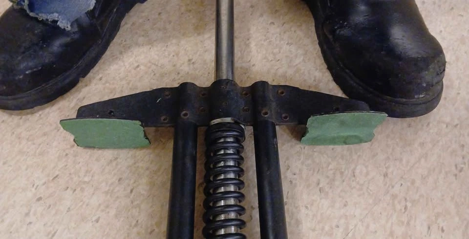 This thing is a whole lot of fun max weight is around 180 pounds. Skate grip paper on steps and base. I'm sure a couple rubber brake pedal pads would be optimum on the steps I don't have any handy though. She's cleaned up tuned up and ready to catch some air. I'm 45 and weight 160 I have a blast on this thing.