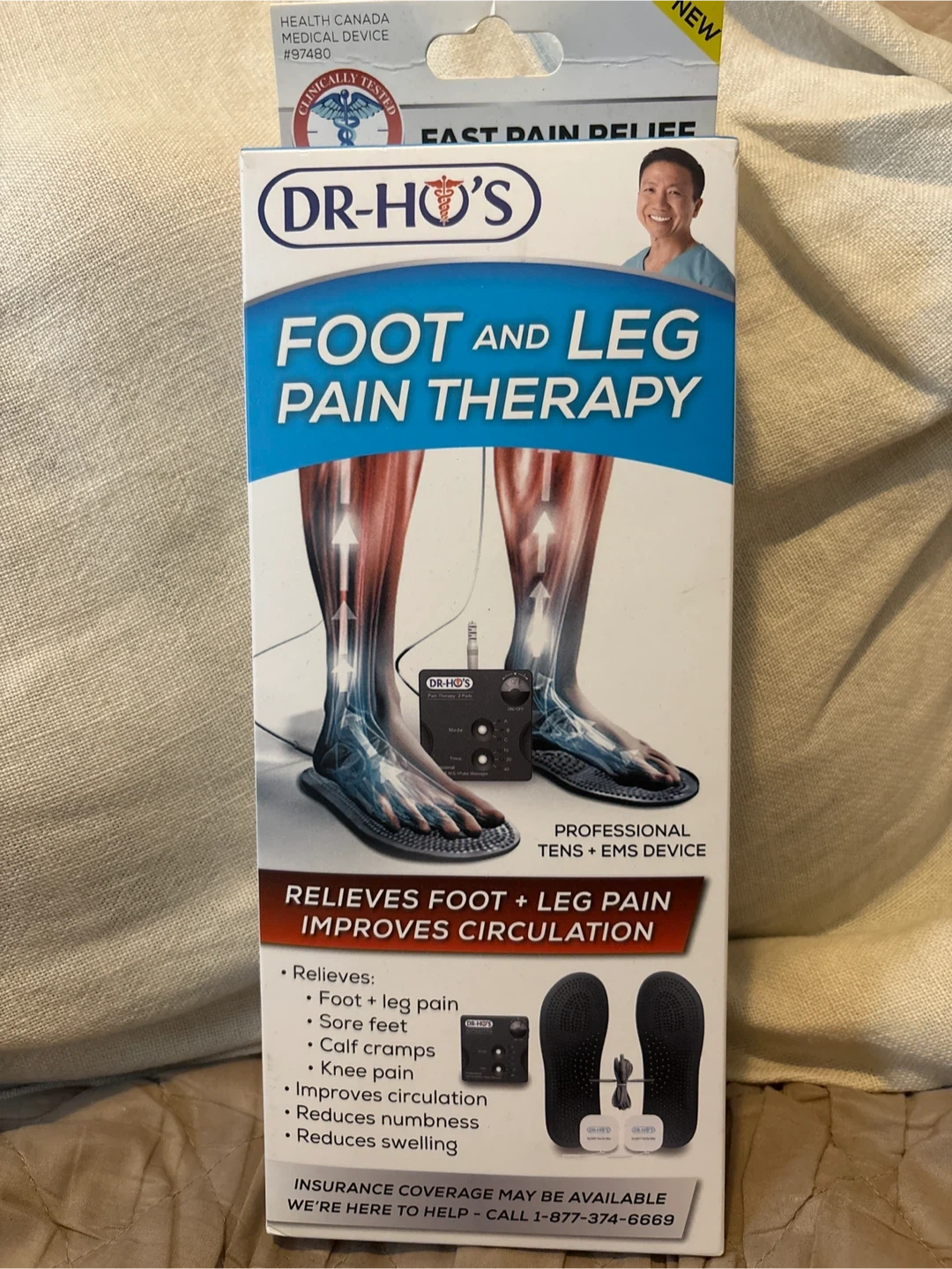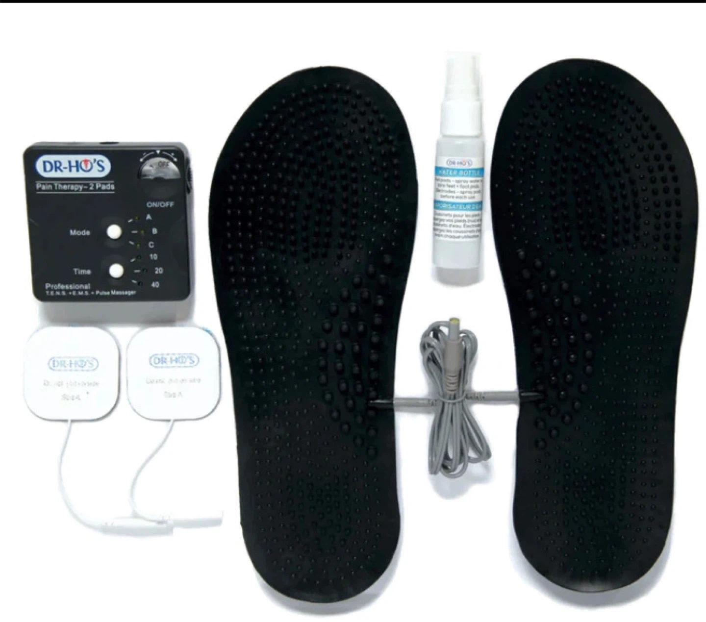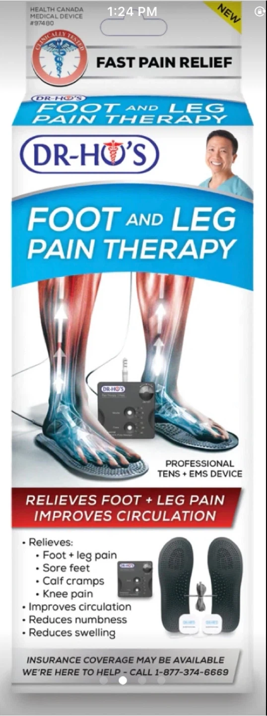 Brand new DR-HO'S Foot and Leg Pain Therapy System! This is a professional TENS + EMS device designed to relieve foot and leg pain and improve circulation. It comes with everything in the original box, including the control unit, foot pads, electrode pads, and water bottle. Perfect for relieving sore feet, calf cramps, and knee pain!