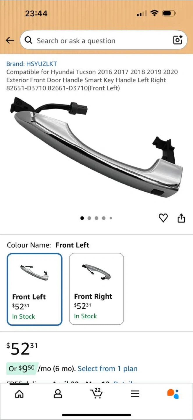 ๐๐ฅ Hyundai Tucson 2016โ2020 Front Left Door Handle (Smart Key) HSYUZLKT ๐ฅ๐