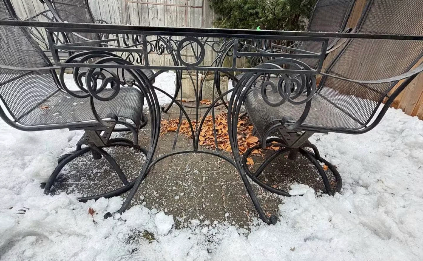 Wrought Iron Glass Top Patio Dining Set