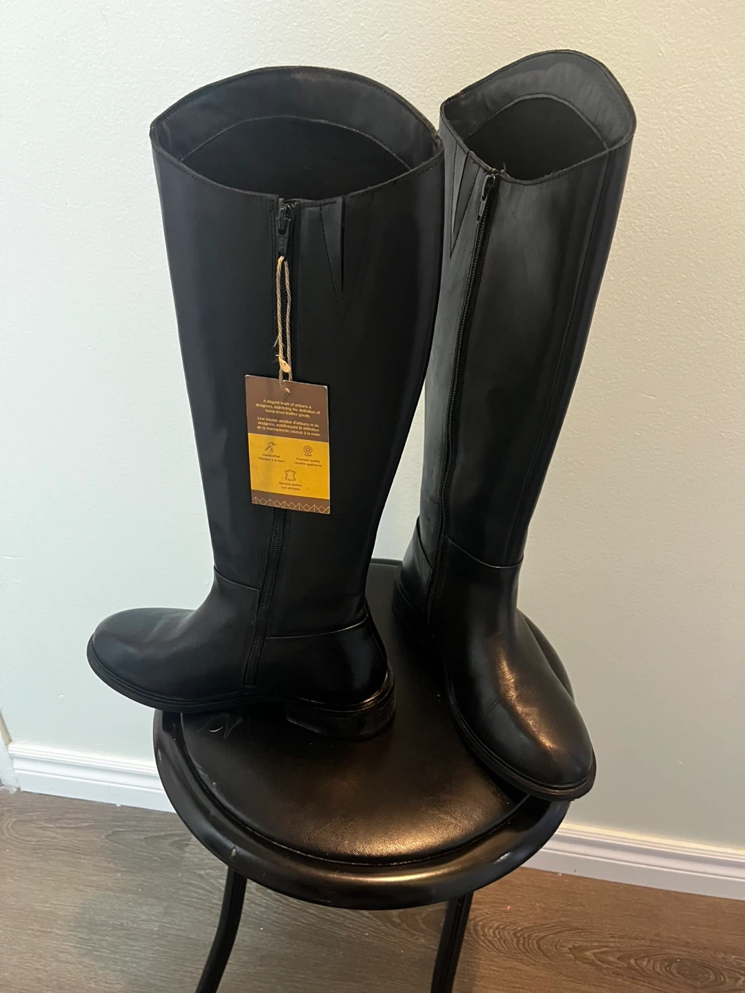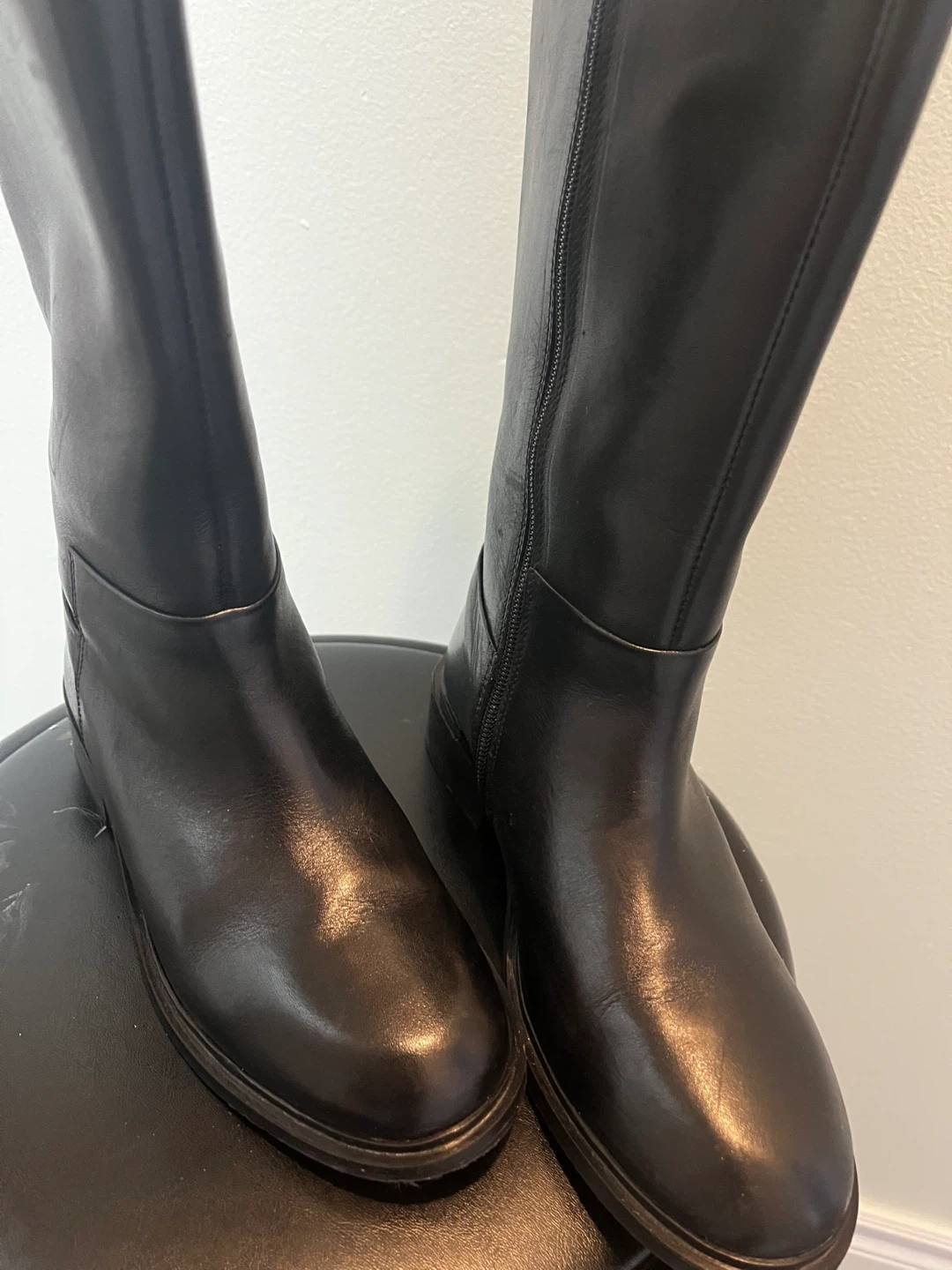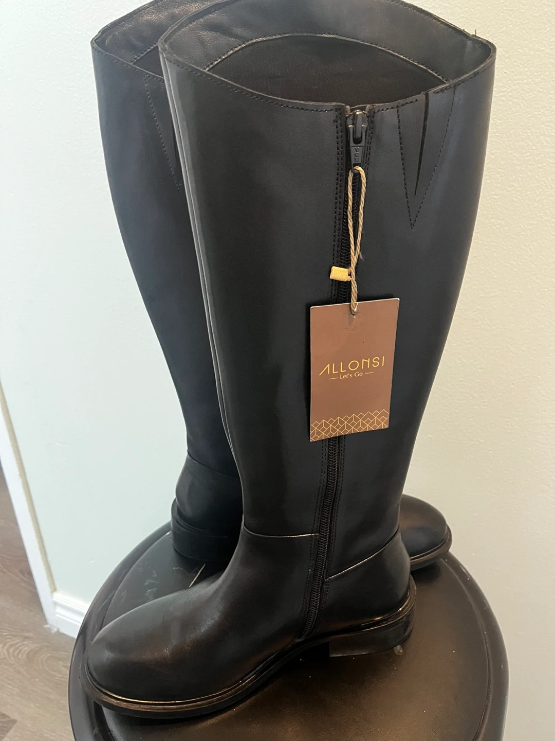 Allonsi Bronya women's leather long boots in black. Crafted from fine Italian leather with a side zipper closure. These boots are knee-high.