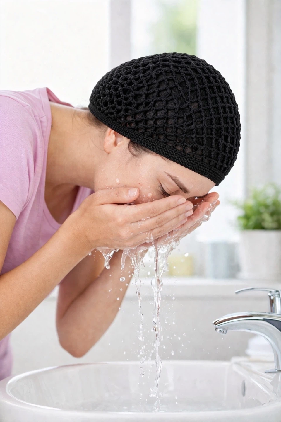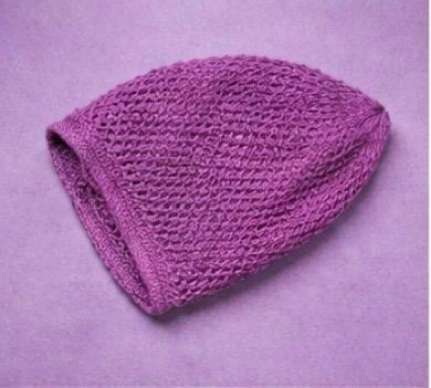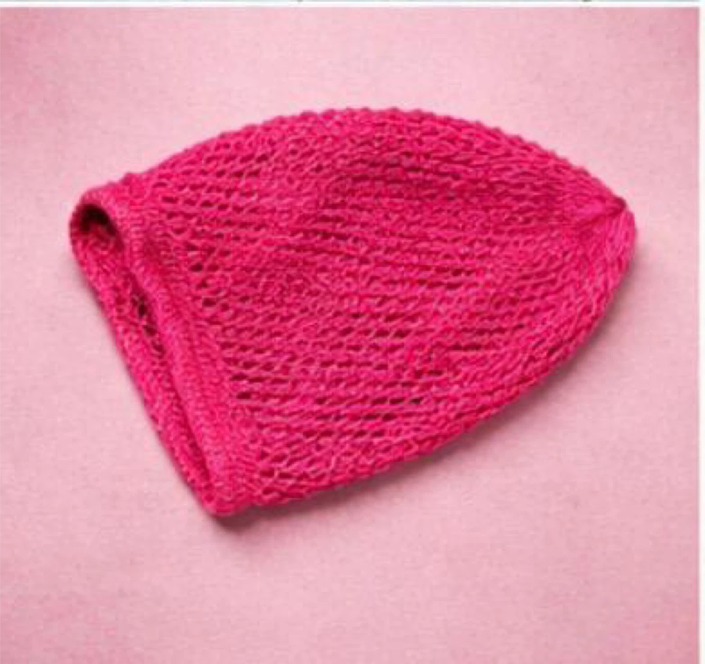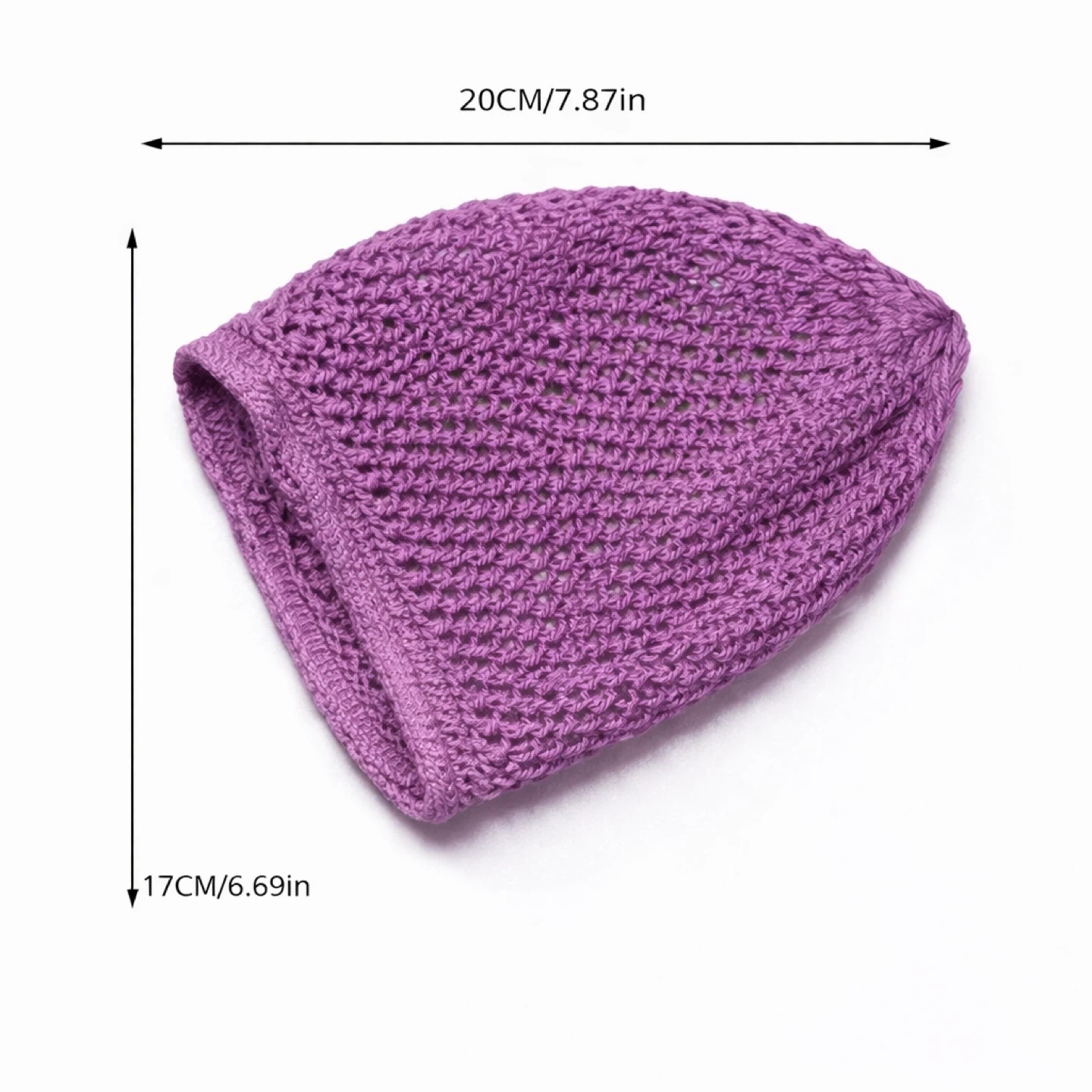 This crocheted cap is great for keeping hair in place while showering or washing your face. It's made with a flexible, net-like material for comfort. Available in multiple colours, this cap measures approximately 20CM/7.87in wide and 17CM/6.69in tall.