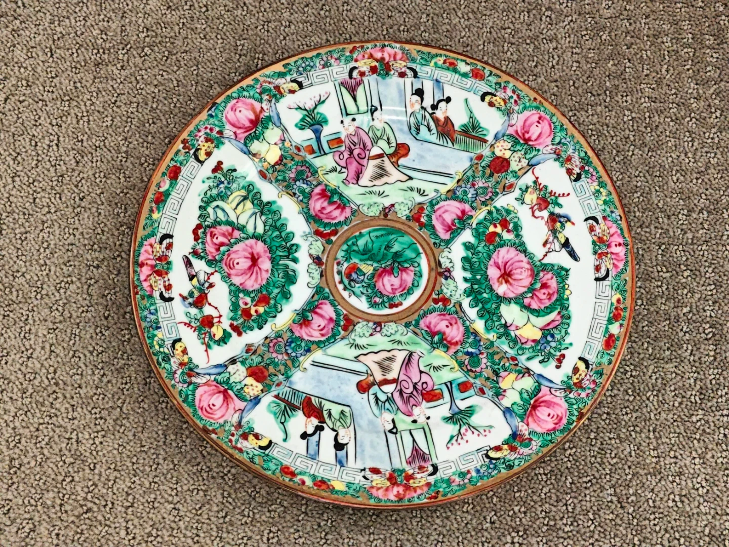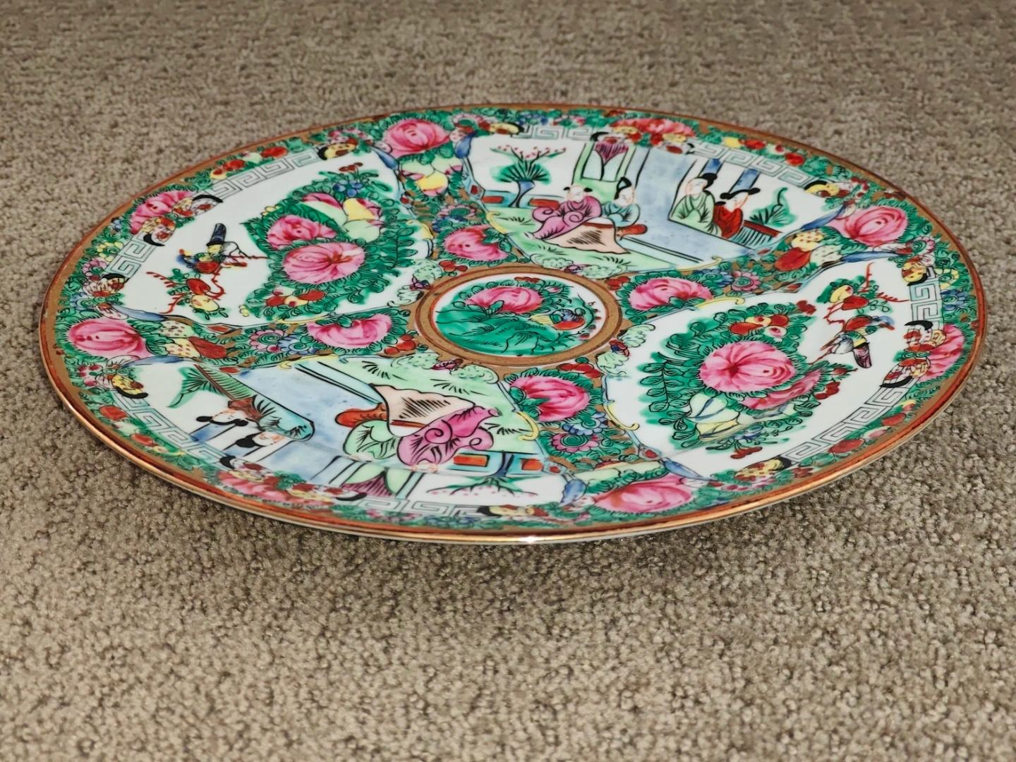 I am selling a Authentic Asian Vintage Canton Famille Rose Medallion Hand Painted Decorative Porcelain 10" Art Plate - Mid-20th Century in excellent condition. No chips or cracks on the plate. Add a touch of timeless Chinese art to your home with this magnificent vintage Canton Rose Medallion plate. This stunning 10.25-inch decorative piece is in excellent, pristine condition, showing no chips, cracks, or signs of wear. Its vibrant, hand-painted details and radiant gold gilt are perfectly preserved.