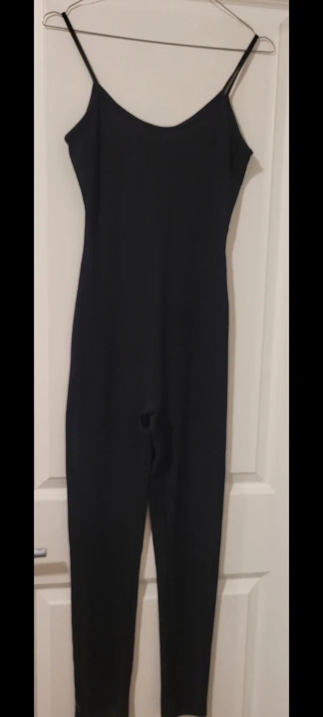 I have a black dress with a V-neck and long sleeves, size XS. Also, a black jumpsuit with spaghetti straps, size XS. And a sleeveless cowl neck dress in a burgundy colour, size S