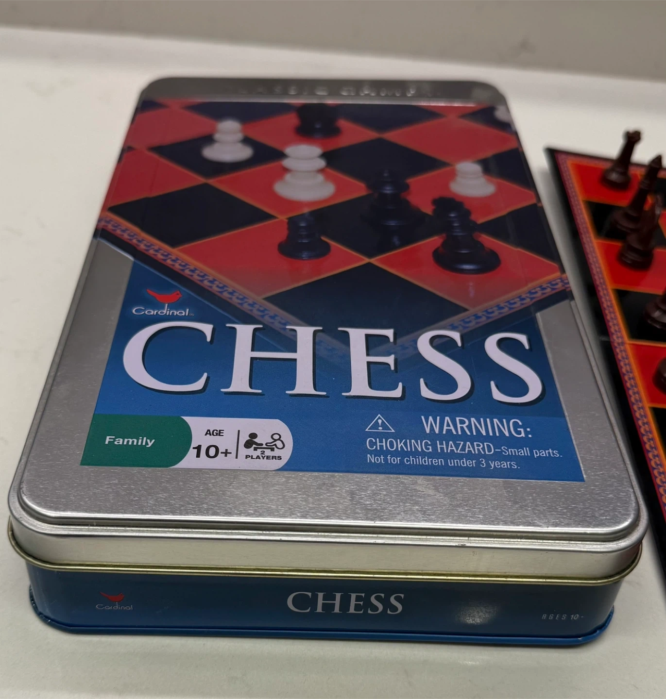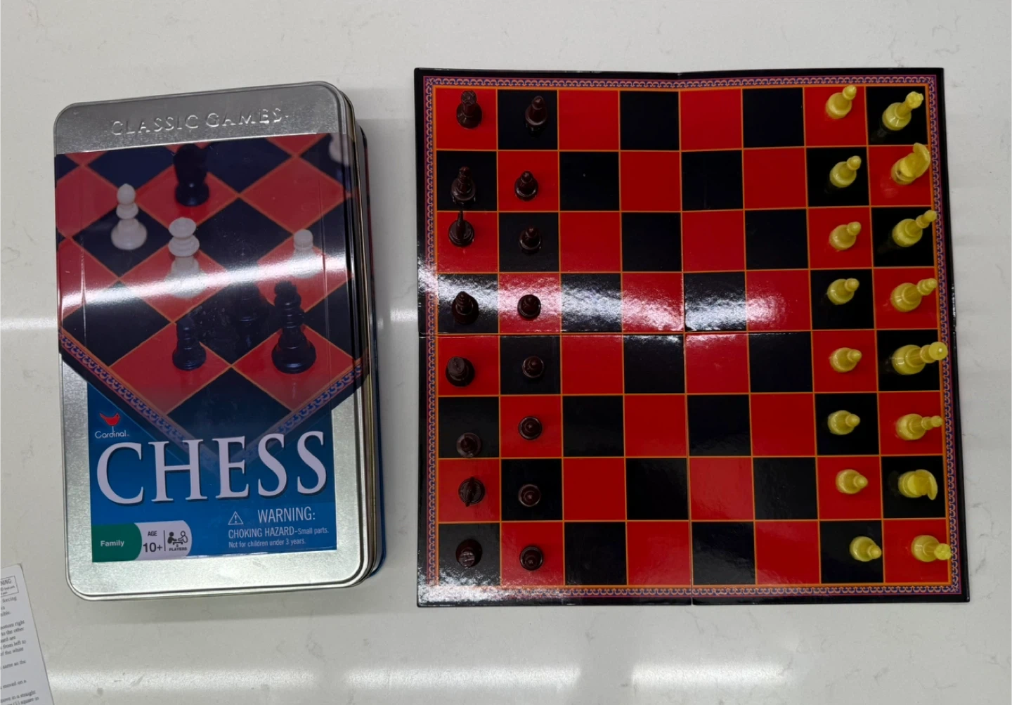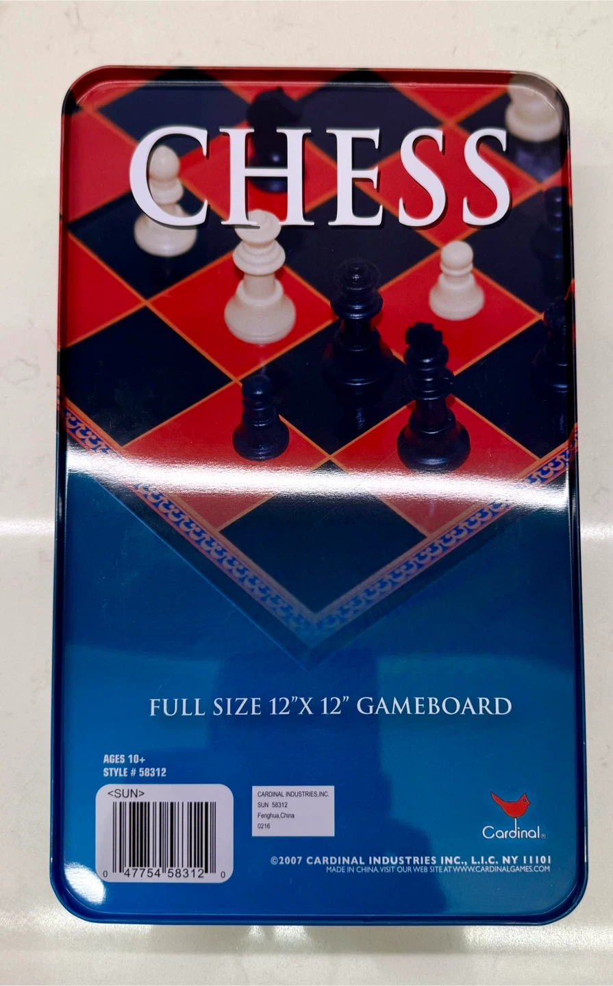 This is a Classic Games chess set in light weight plastic pieces. It includes a foldable board and two sets of playing pieces.
