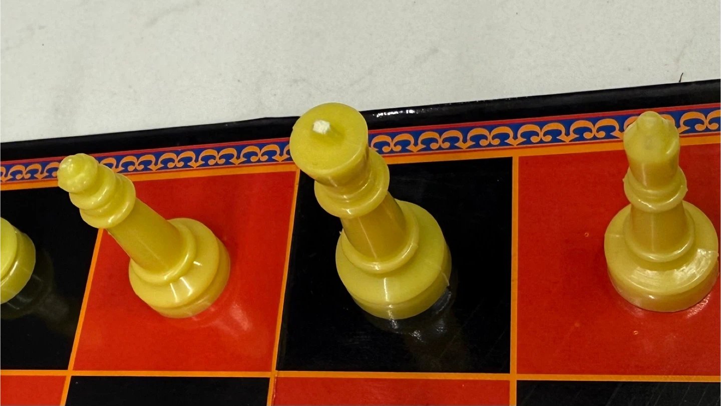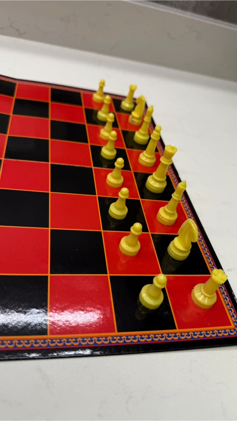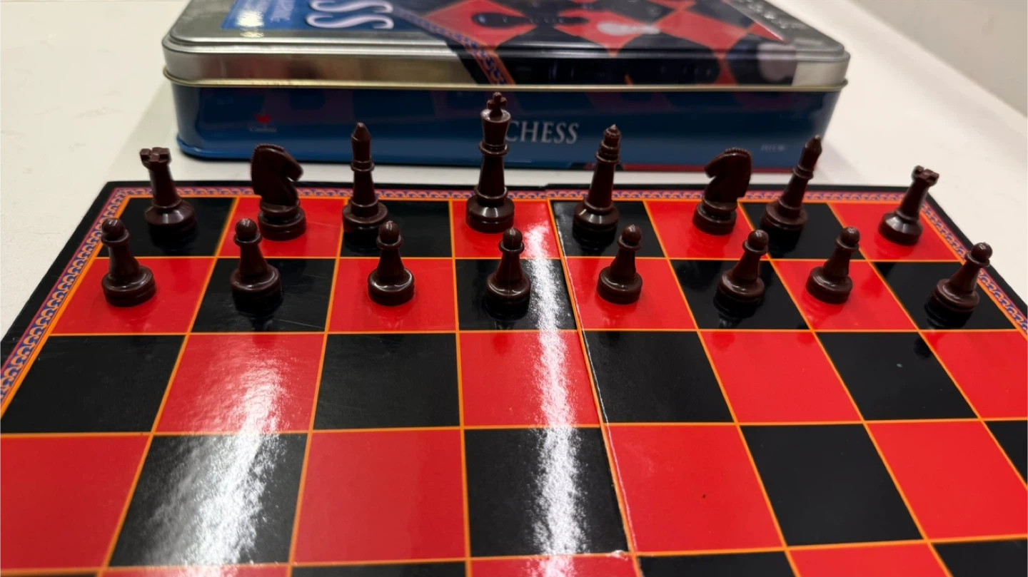 This is a Classic Games chess set in light weight plastic pieces. It includes a foldable board and two sets of playing pieces.
