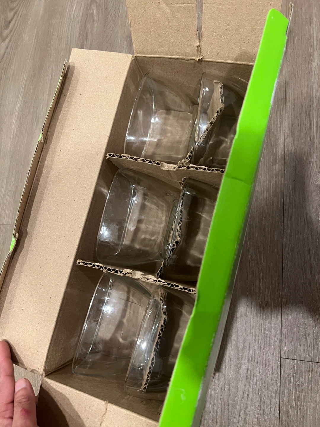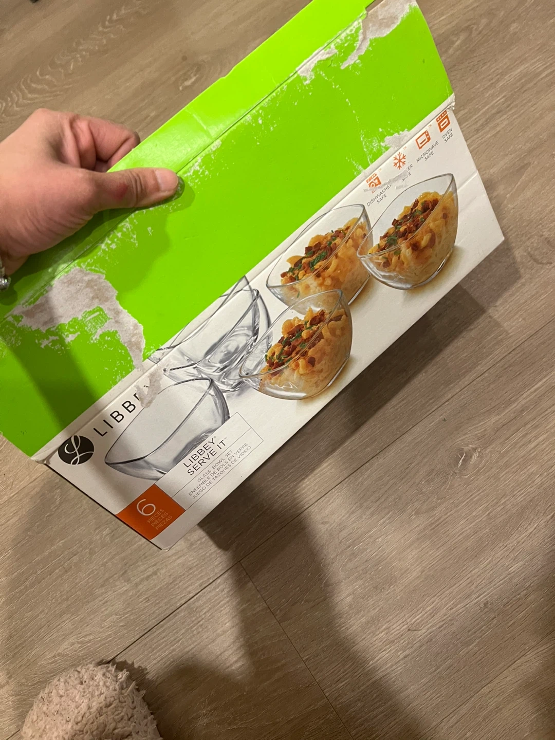 This is a set of 6 glass bowls from Libbey's Serve It collection. They're perfect for serving appetizers, desserts, or dips. Made of clear glass.