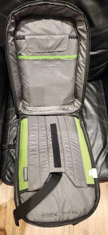 This Targus backpack is designed to protect laptops with screens up to 15.6 inches and offers plenty of storage space. This backpack is used, but still in good condition, making it a reliable choice for daily use. It features a padded laptop compartment, multiple accessory pockets, durable construction, and comfortable shoulder straps. If the ad's up, the backpack's available!
