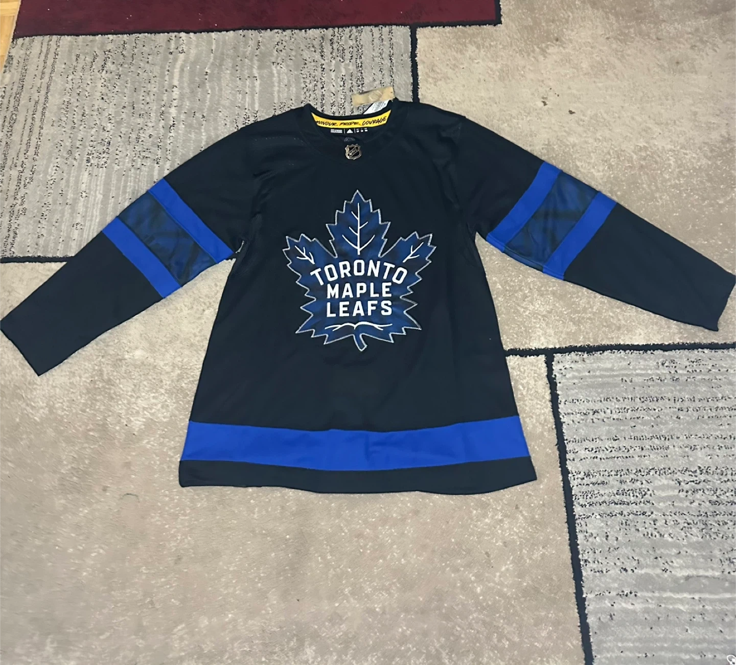 Selling an Adidas NHL Toronto Maple Leafs jersey in size 50. This jersey is part of the Authentic NHL Jersey Collection and features the Aeroready technology. It showcases the iconic Maple Leafs design. Originally bought for $219.99!